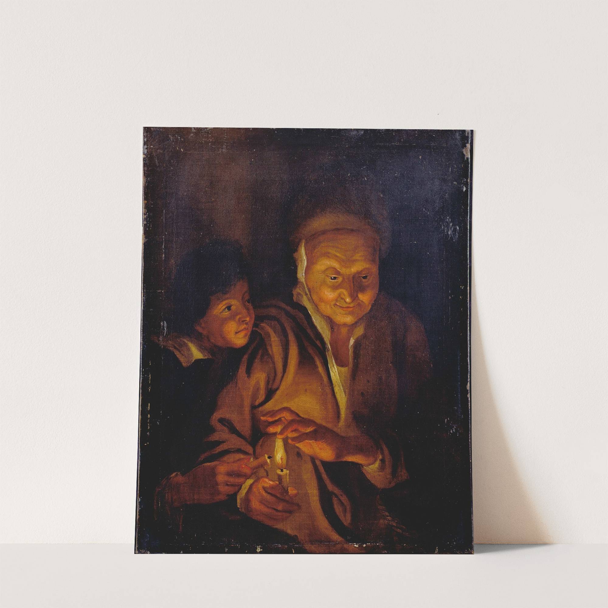 A Boy lighting a Candle from one held by an Old Woman by Peter Paul Rubens - Wall Art Print