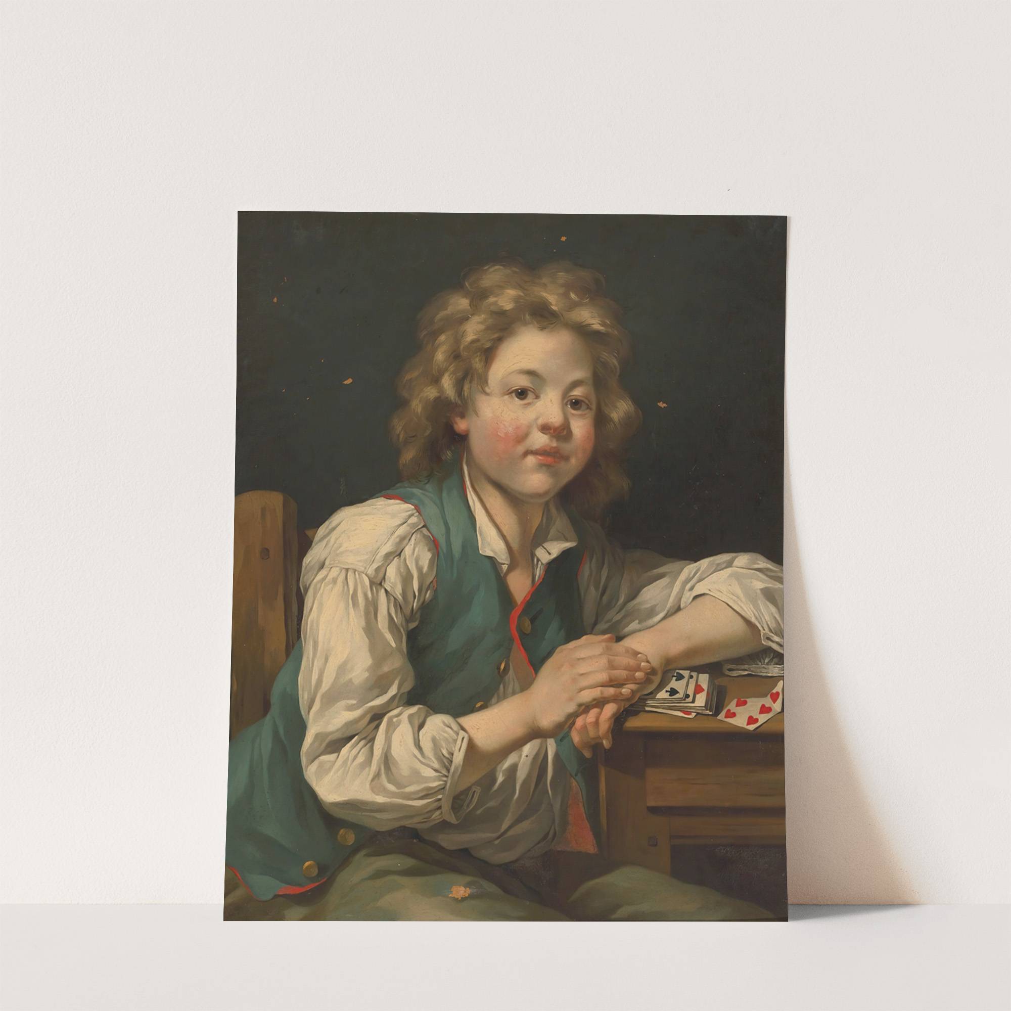 A Boy, Seated Beside A table With Cards by Jean-Baptiste Charpentier - Wall Art Print