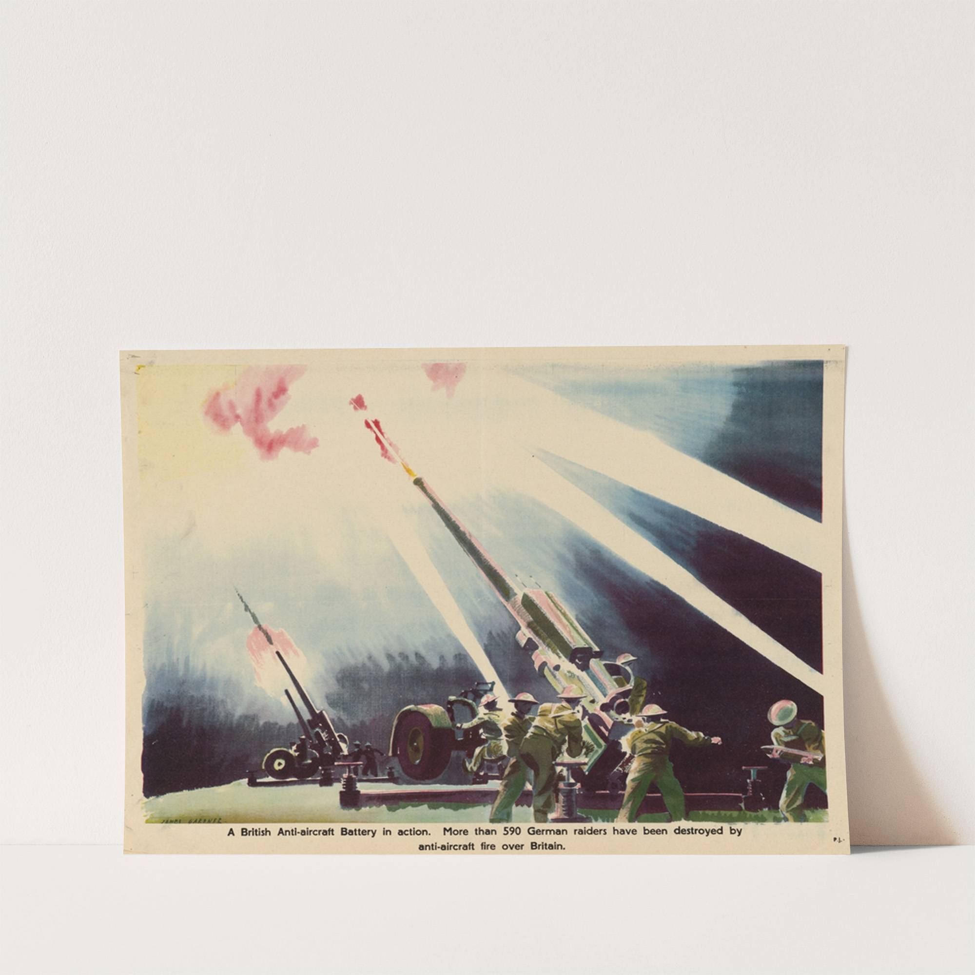 A British Anti-Aircraft Battery in Action by James Gardner - Wall Art Print