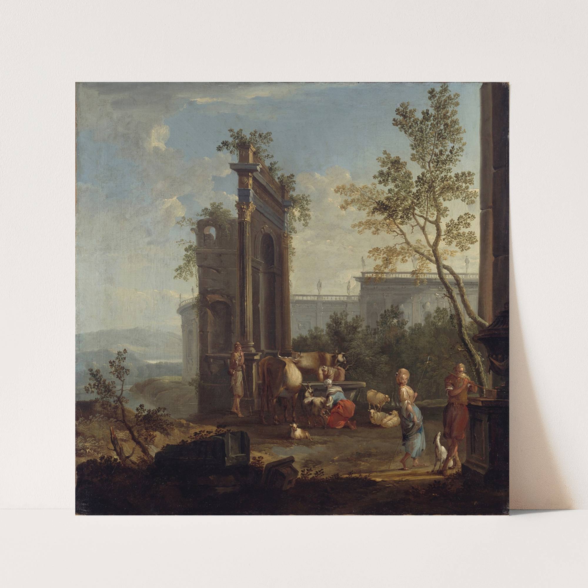 A Capriccio with Pastoral Figures and Animals by Willem van der Hagen  - Wall Art Print