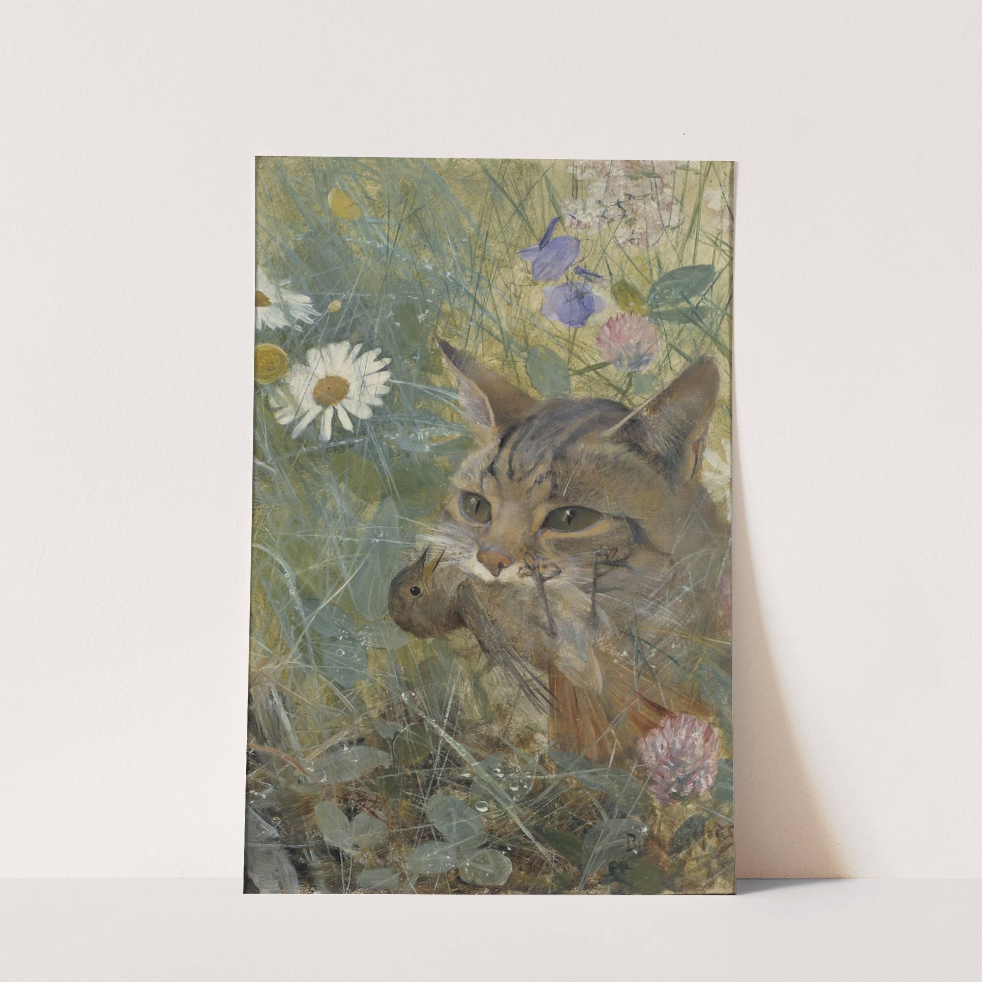 A Cat with a Young Bird in its Mouth by Bruno Liljefors - Wall Art Print