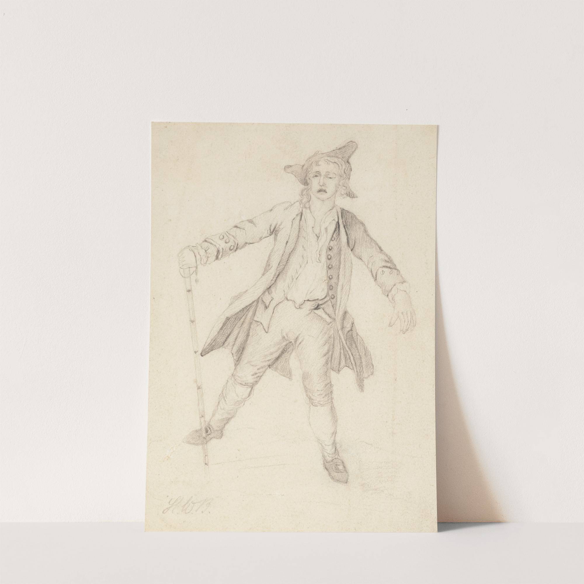 A Dishevelled Man Grimacing and Walking Awkwardly with a Cane by Henry William Bunbury - Wall Art Print