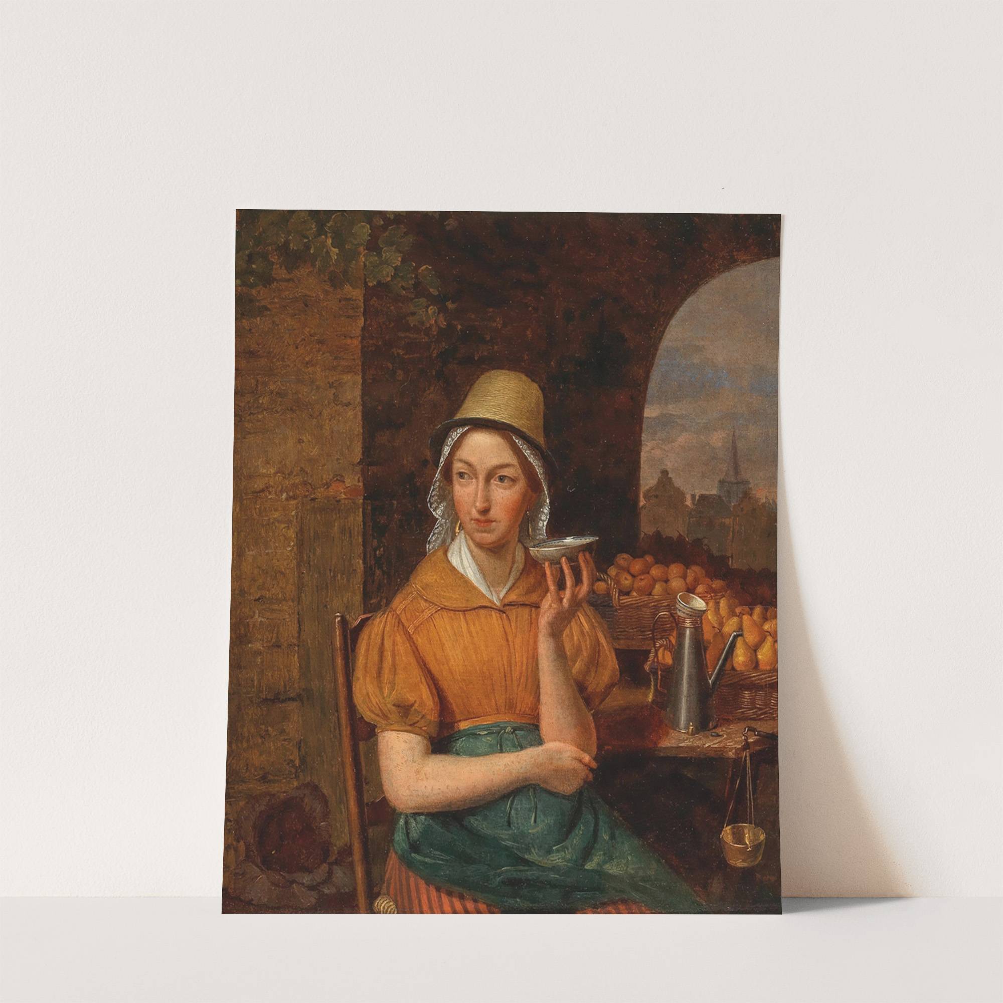 A Fruit Seller with a Town in the Background by Antwerp School - Wall Art Print