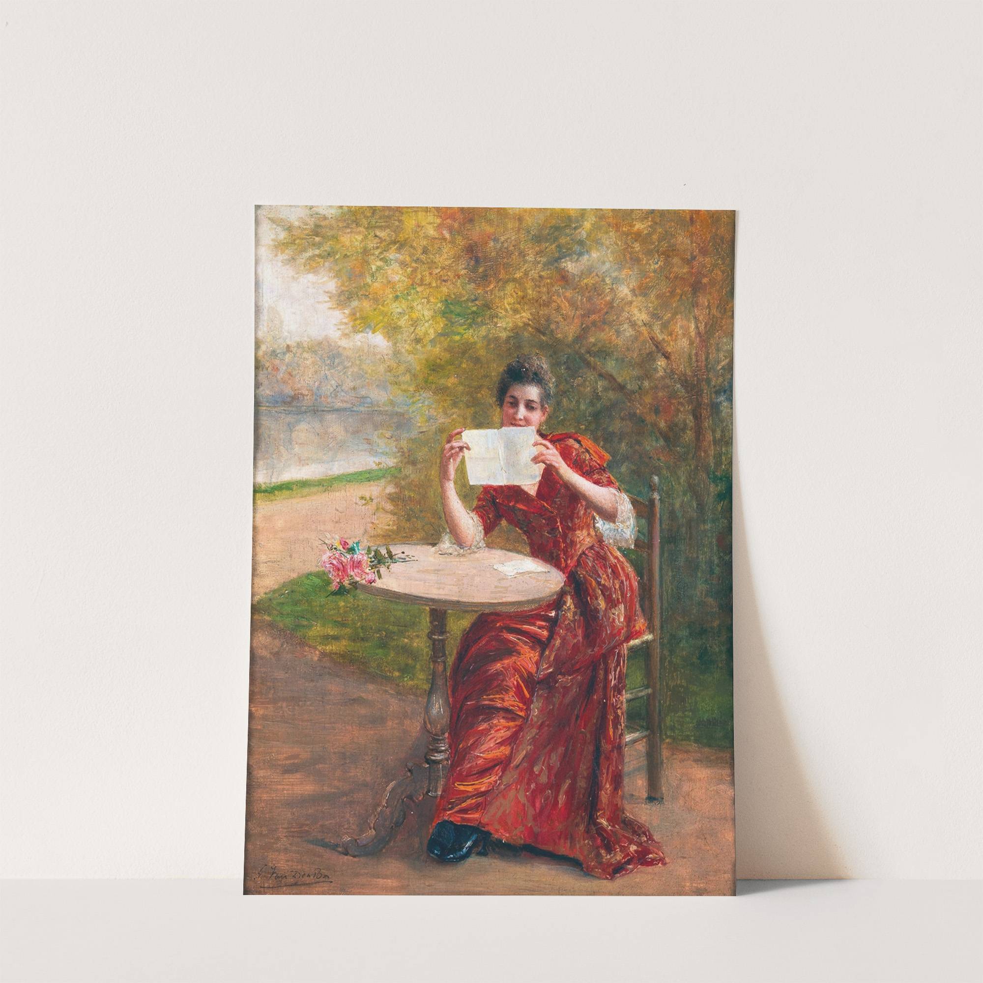 A Girl Reading a Letter in a Park Landscape by Georges van den Bos - Wall Art Print