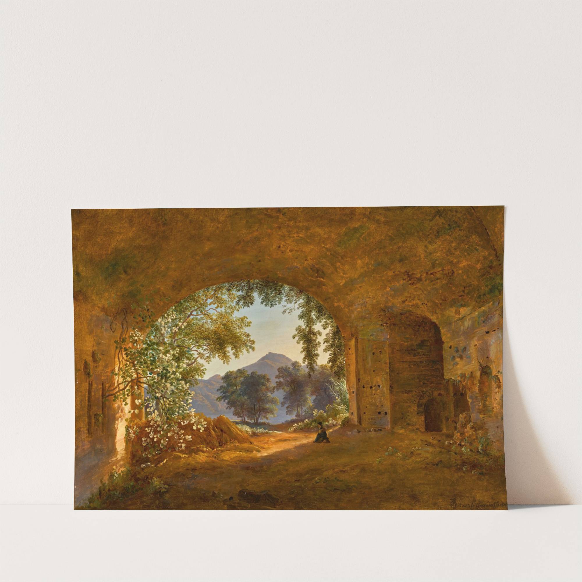 A Grotto with Castel Gandolfo Beyond by Louise-Joséphine Sarazin de Belmont - Wall Art Print