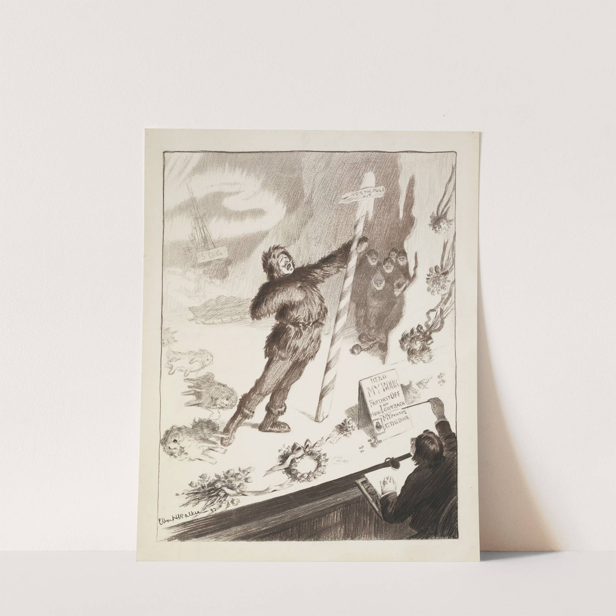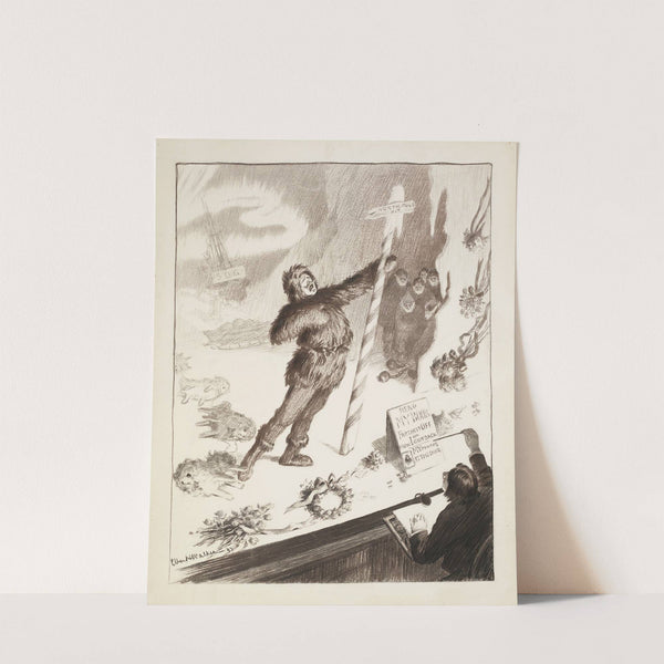 A man on stage recounts his journey to the North Pole. People have thrown wreathes on the stage. (1898) by William Henry Walker - Wall Art Print