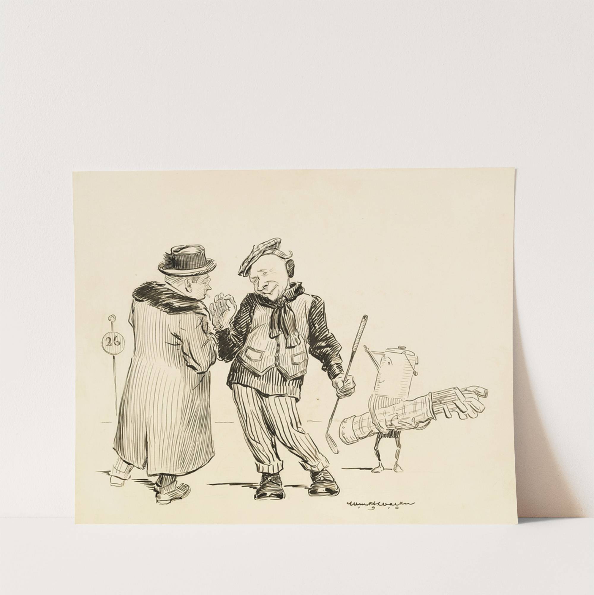 A man who has been golfing talks with another man who is smoking at the 26th hole (1910) by William Henry Walker - Wall Art Print