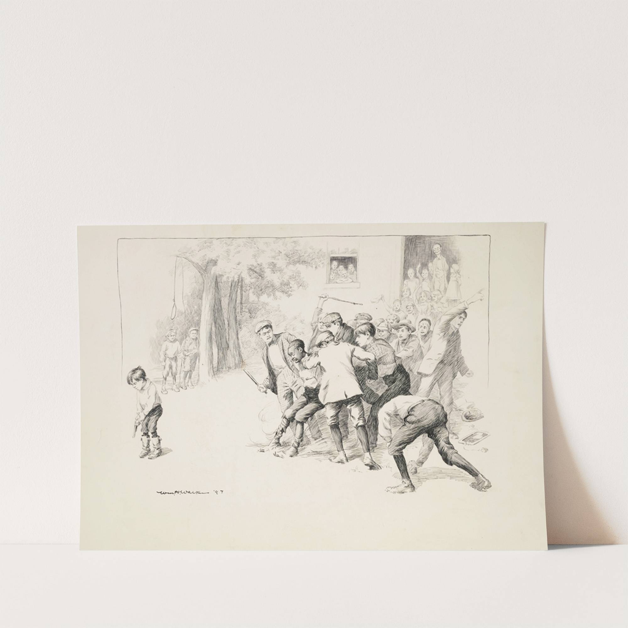 A mob of school children attack a black boy in their school yard and prepare to lynch him, with their teacher watching in the background (1897) by William Henry Walker - Wall Art Print
