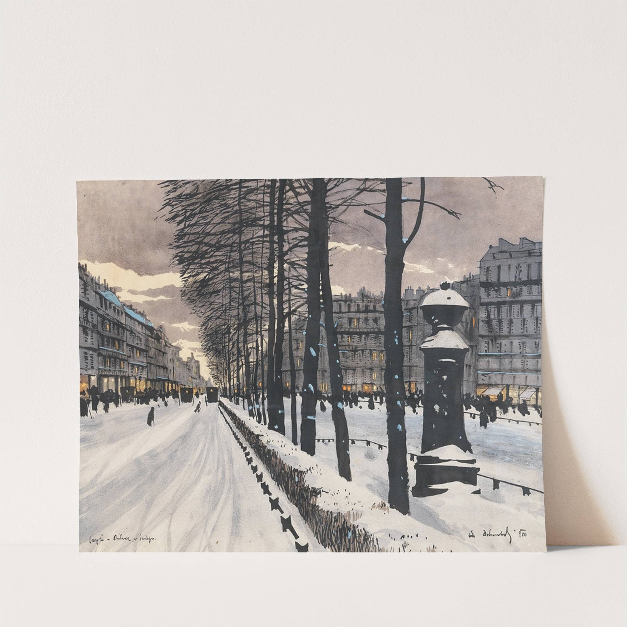 A Paris Boulevard in the Snow by Odo Dobrowolski - Wall Art Print