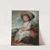 A portrait of a young girl, seated in a landscape with her pet dog, thought to be the Honorable Mary Legge by English School - Wall Art Print