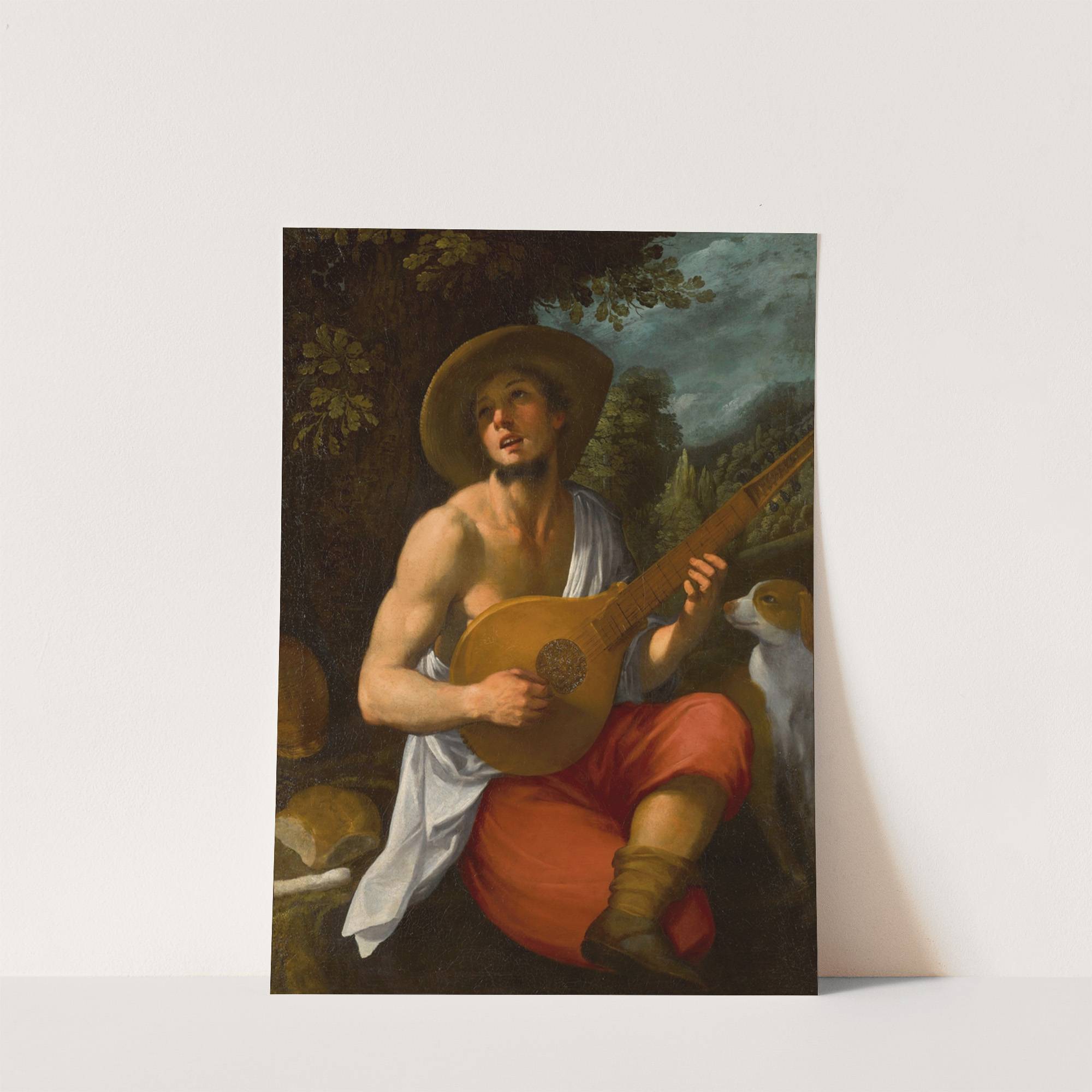 A shepherd playing the cetera by Astolfo Petrazzi - Wall Art Print