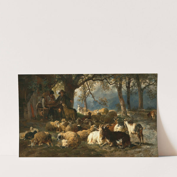 A Shepherd with his Cattle Resting at Noon (1874) by Anton Braith - Wall Art Print