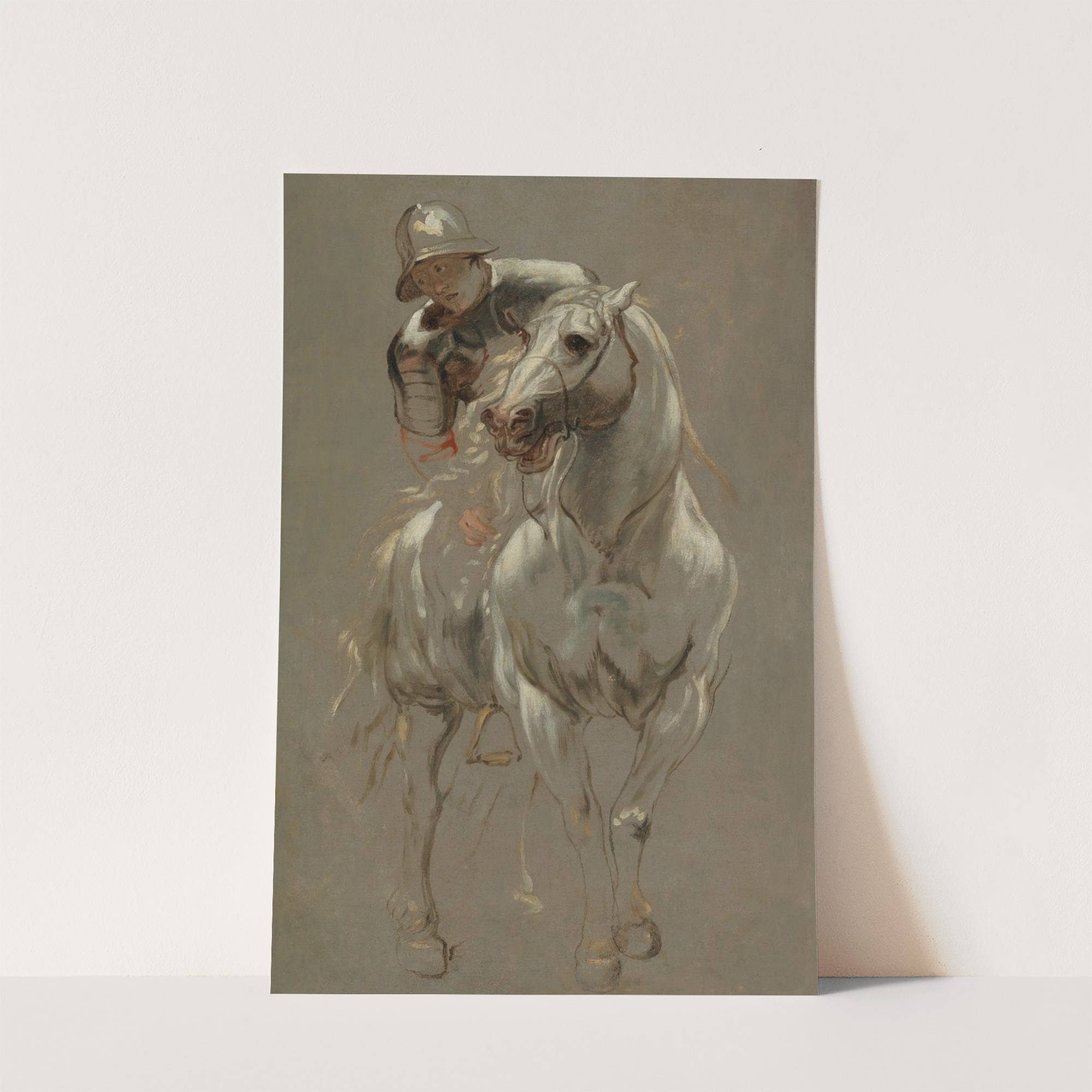 A Soldier In Armour On Horseback by Follower of Anthony van Dyck - Wall Art Print