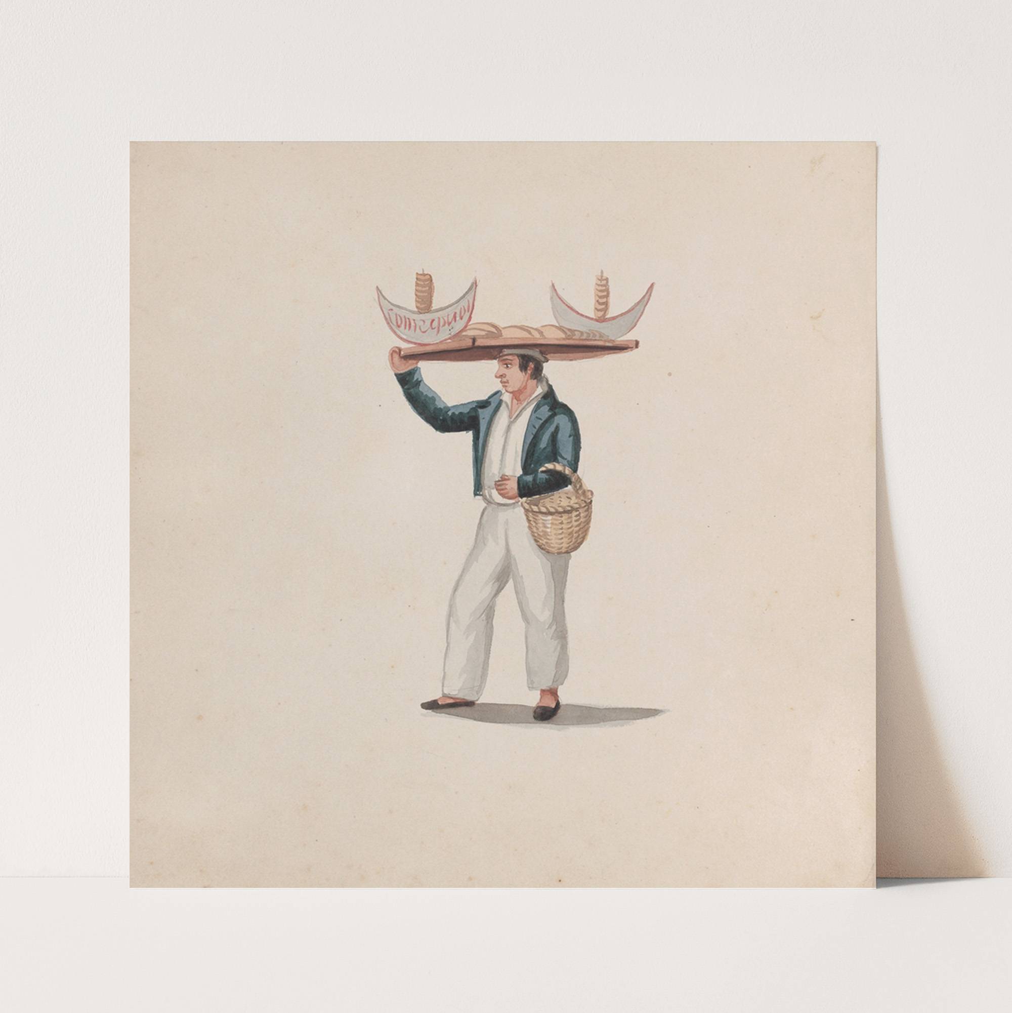 A tortilla vendor balancing a tray on his head by Francisco Fierro - Wall Art Print