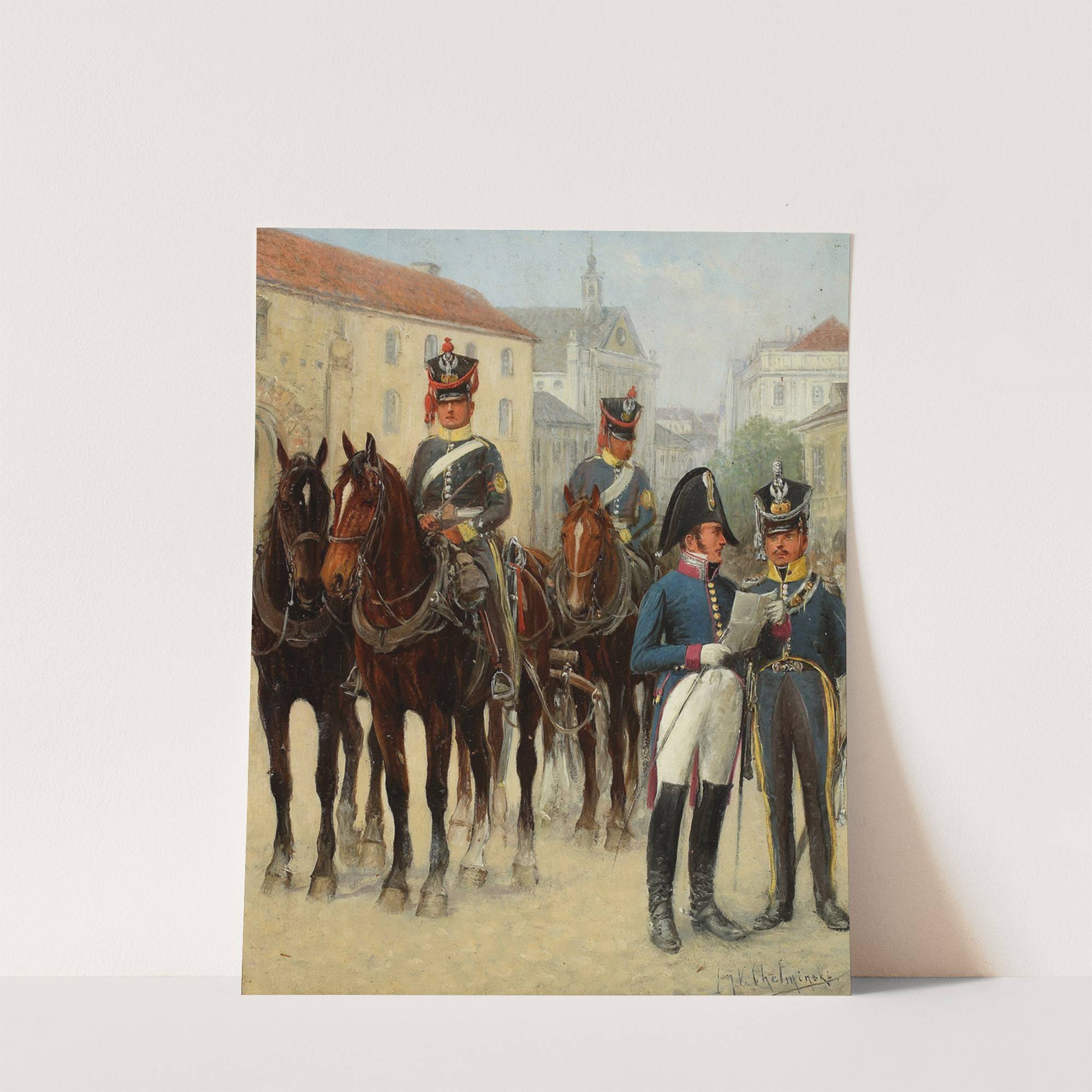 A war commissary, an officer and a transportation soldier by Jan Chełmiński - Wall Art Print