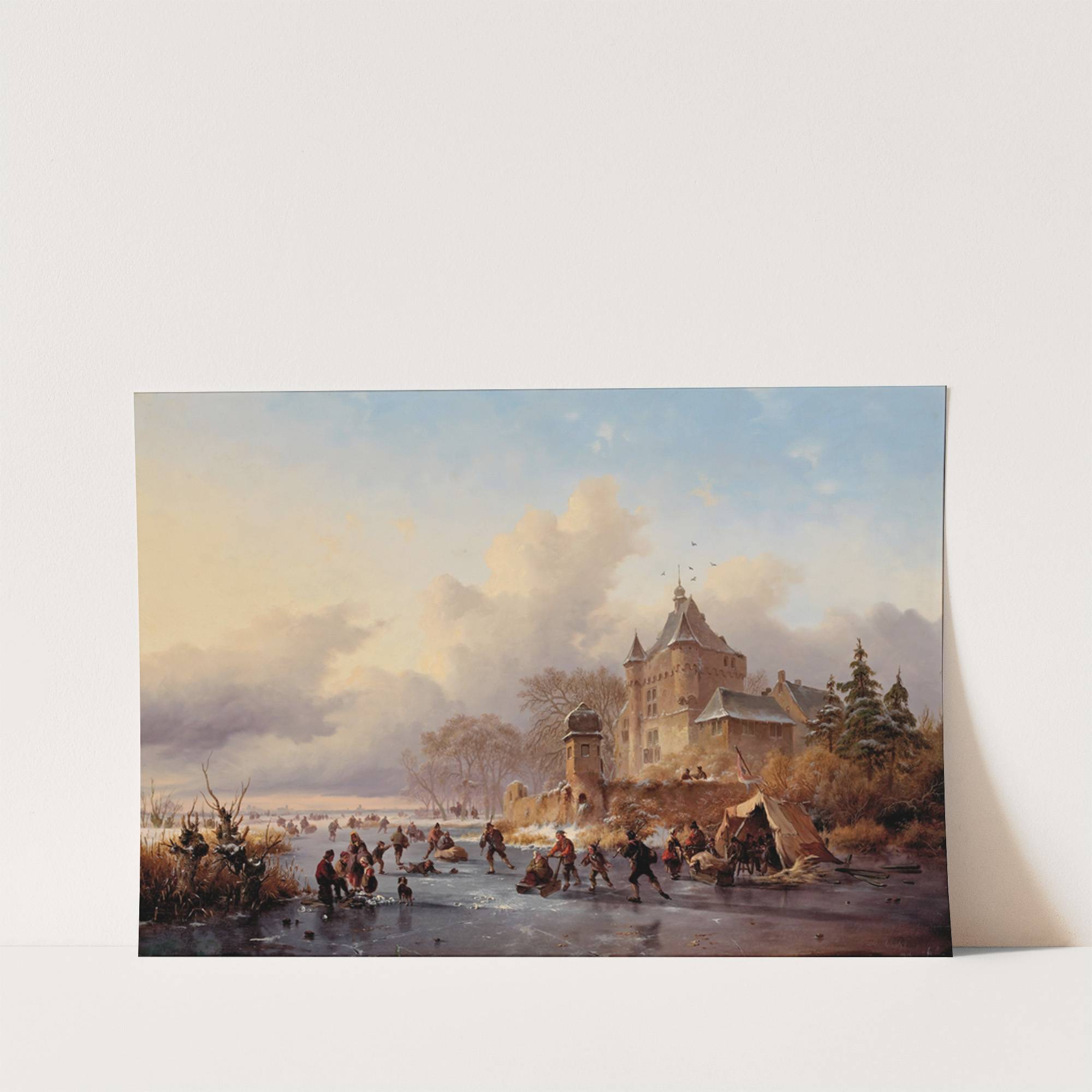 A winter landscape with activites on the ice near a castle by Frederik Marinus Kruseman - Wall Art Print