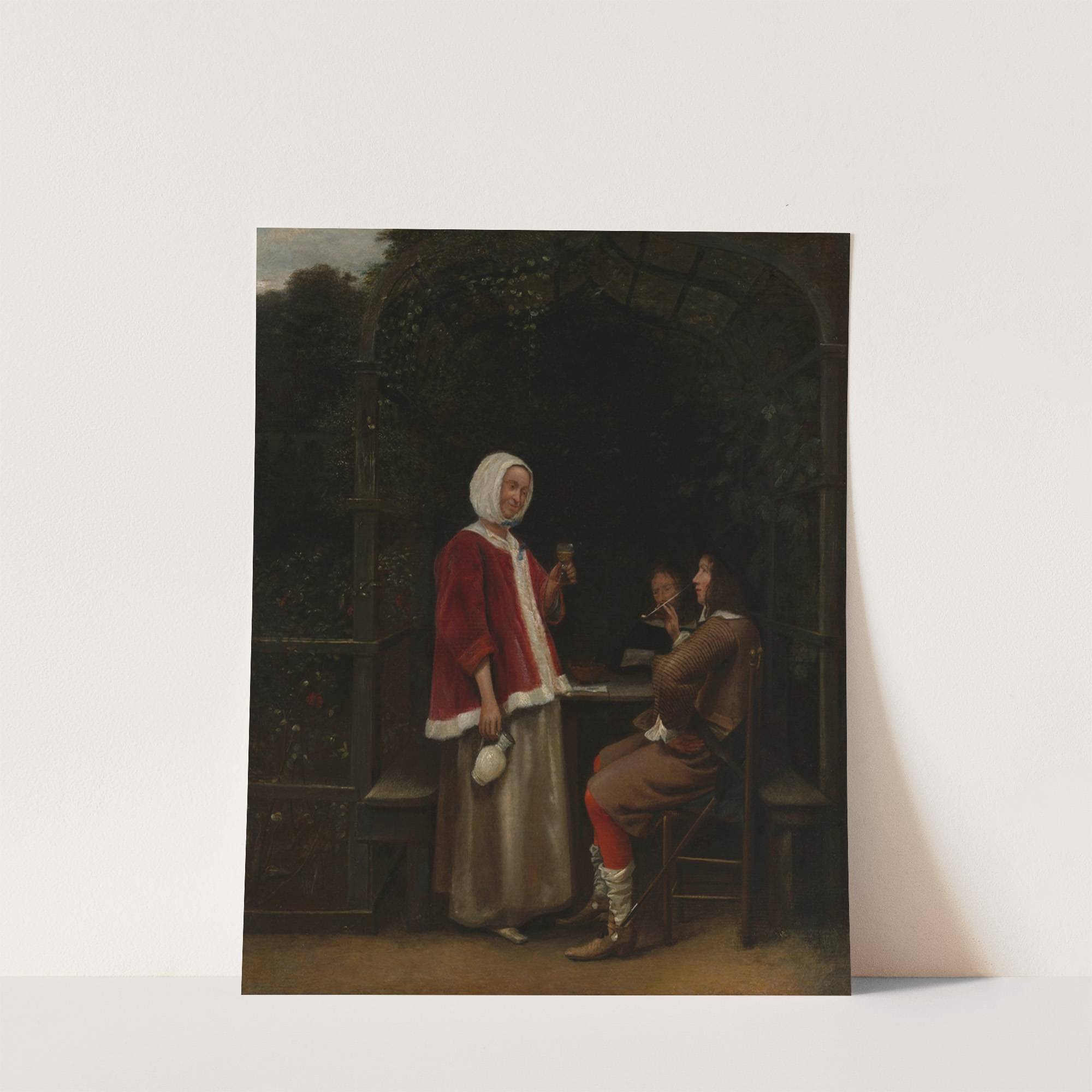 A Woman and Two Men in an Arbor by Pieter De Hooch - Wall Art Print