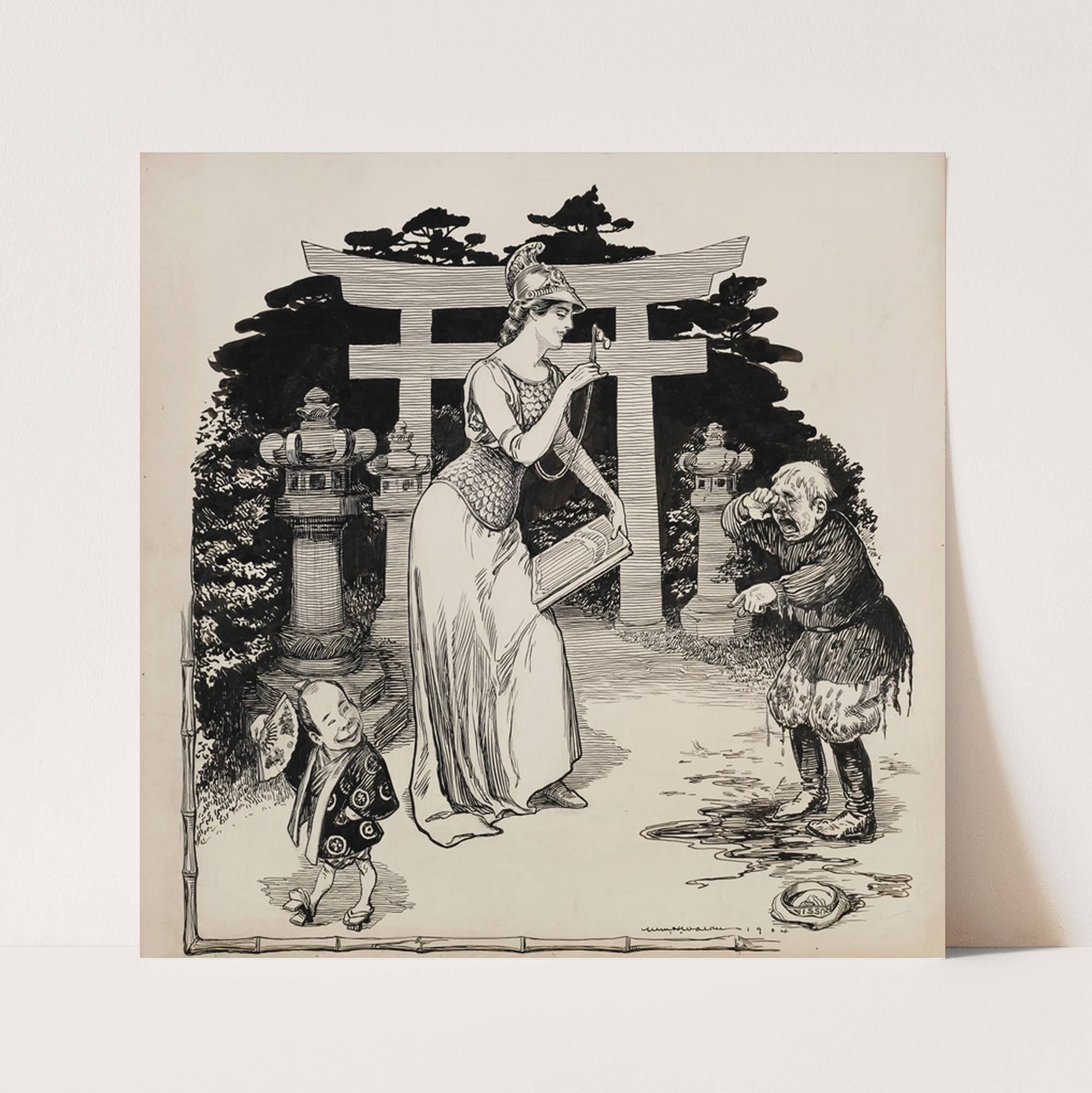 A woman representing civilization comforts a crying child (Russia), as a smiling child (Japan) looks on. (1904) by William Henry Walker - Wall Art Print