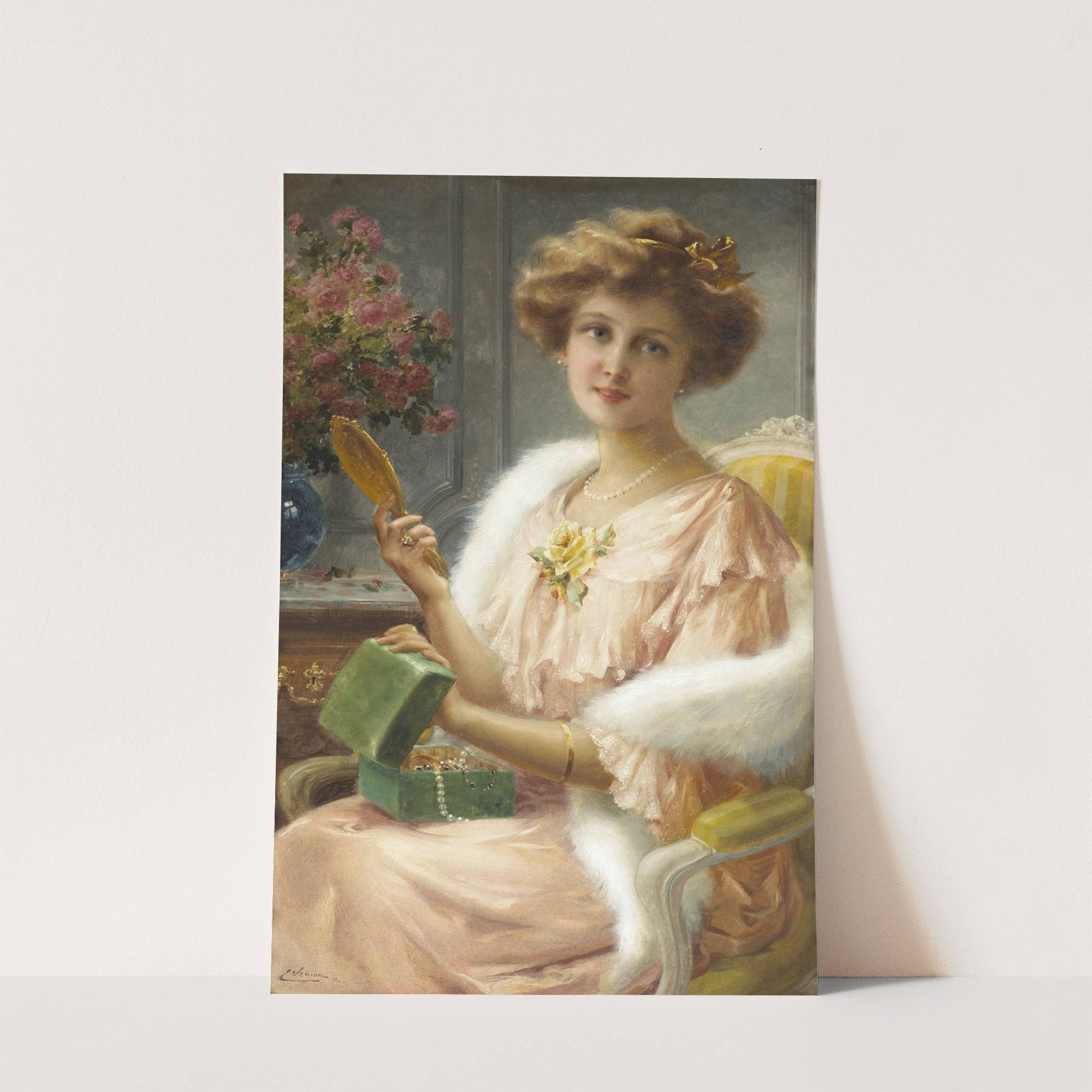 A Young Lady With A Mirror by Emile Vernon - Wall Art Print