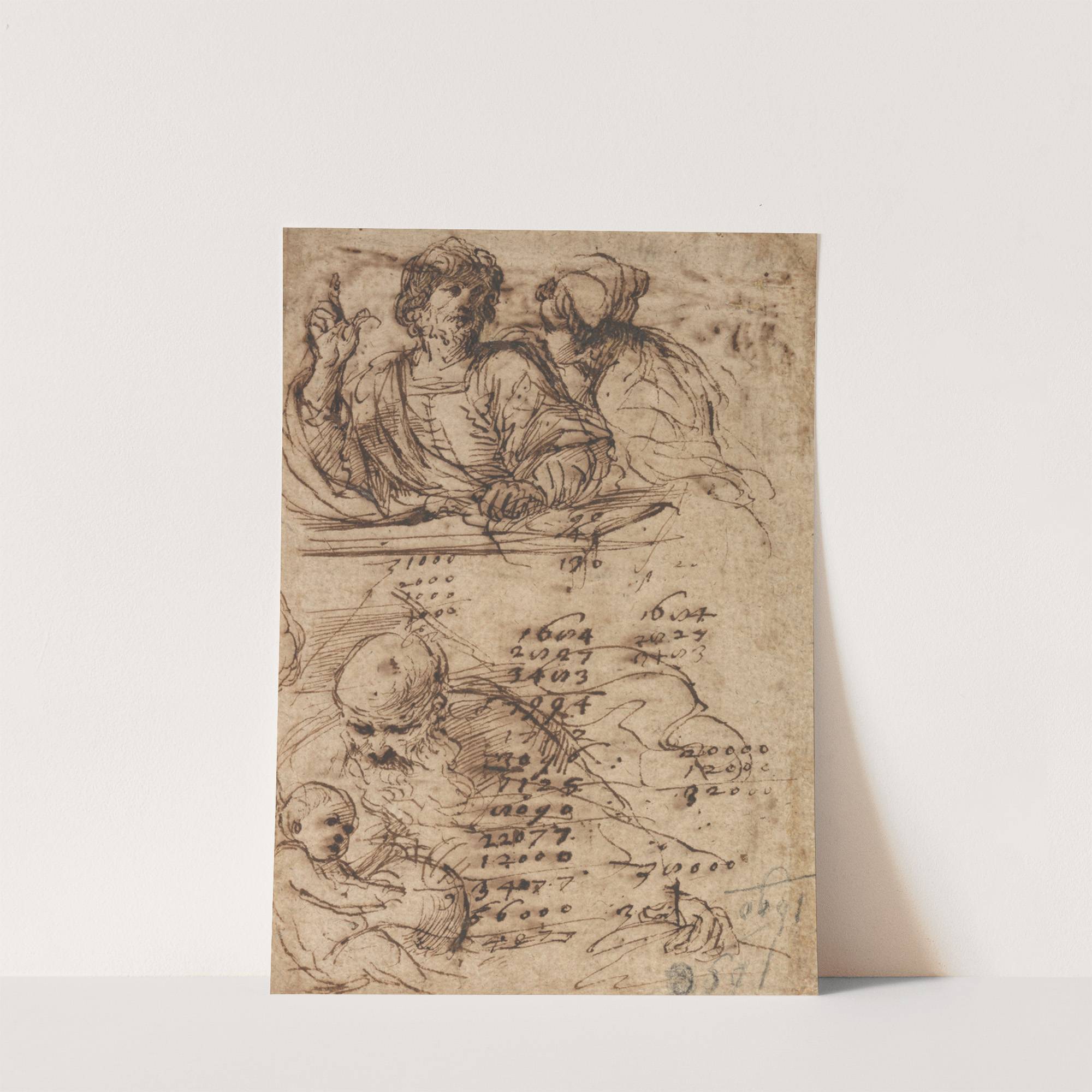 A youth addressing a man, and an old man with a child by Cesare Gennari - Wall Art Print