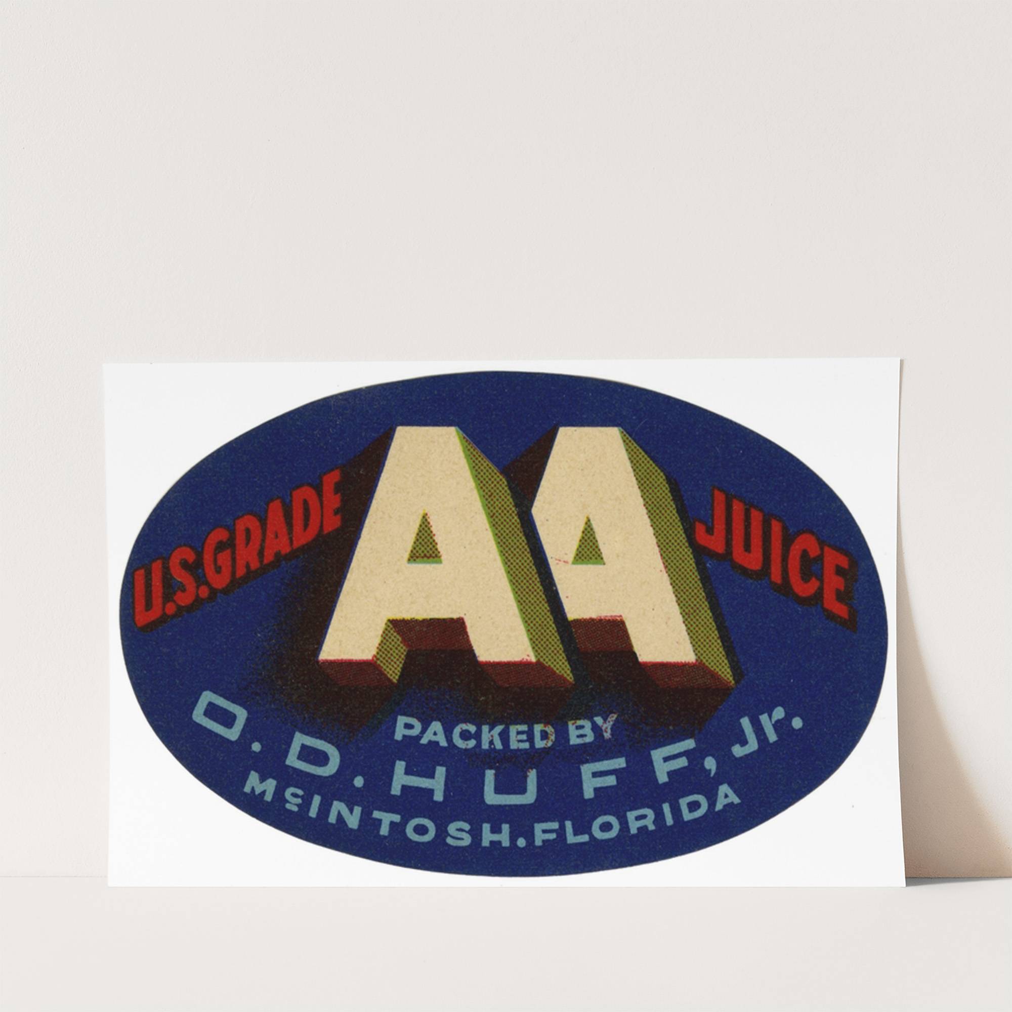 AA Juice Fruit Label (1930-1950) - Wall Art Print