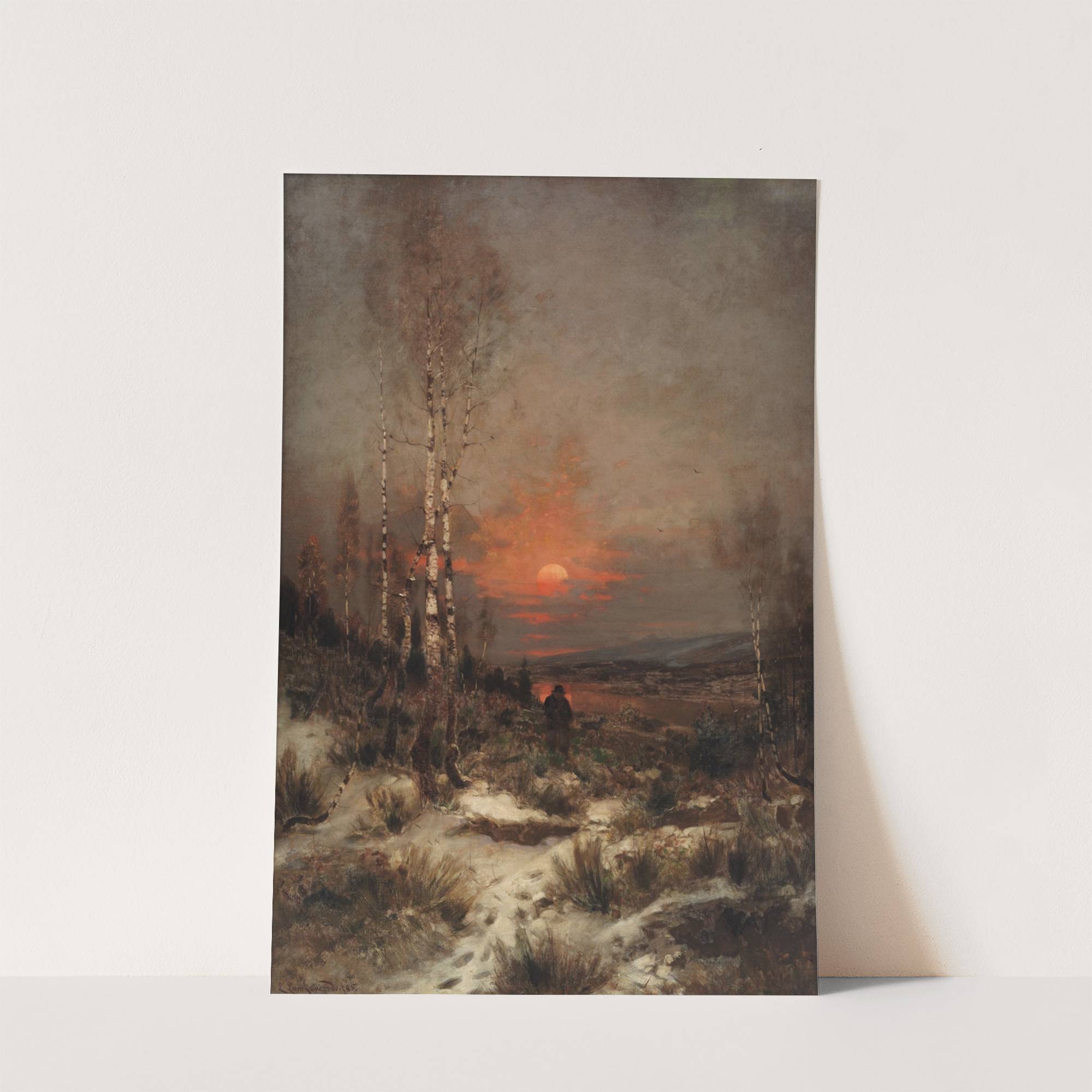 Abendliche Winterlandschaft mit einem Jäger by Ludwig Lanckow - Wall Art Print