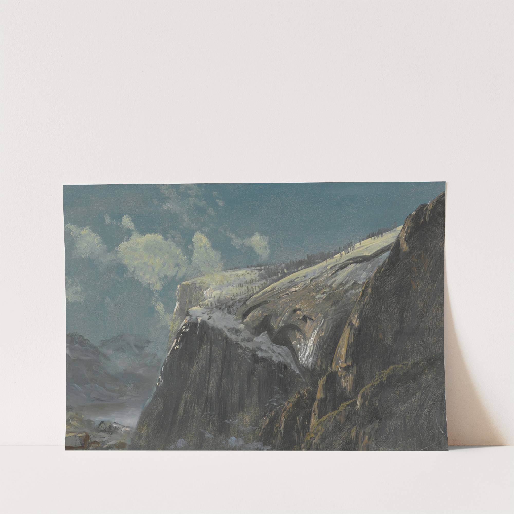 Experience the majestic beauty of nature with "Above the Timberline" by Albert Bierstadt. This captivating art print features a stunning mountain landscape that captures the essence of wilderness and tranquility. The composition showcases a towering cliff face, partially covered in...