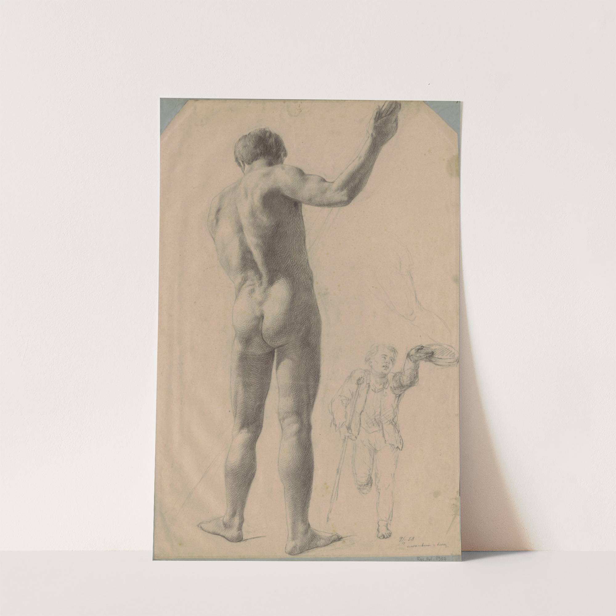 Akt męski stojący tyłem, studium oraz szkic chłopca o kuli, z tacą (1858) by Ignacy Jasiński - Wall Art Print