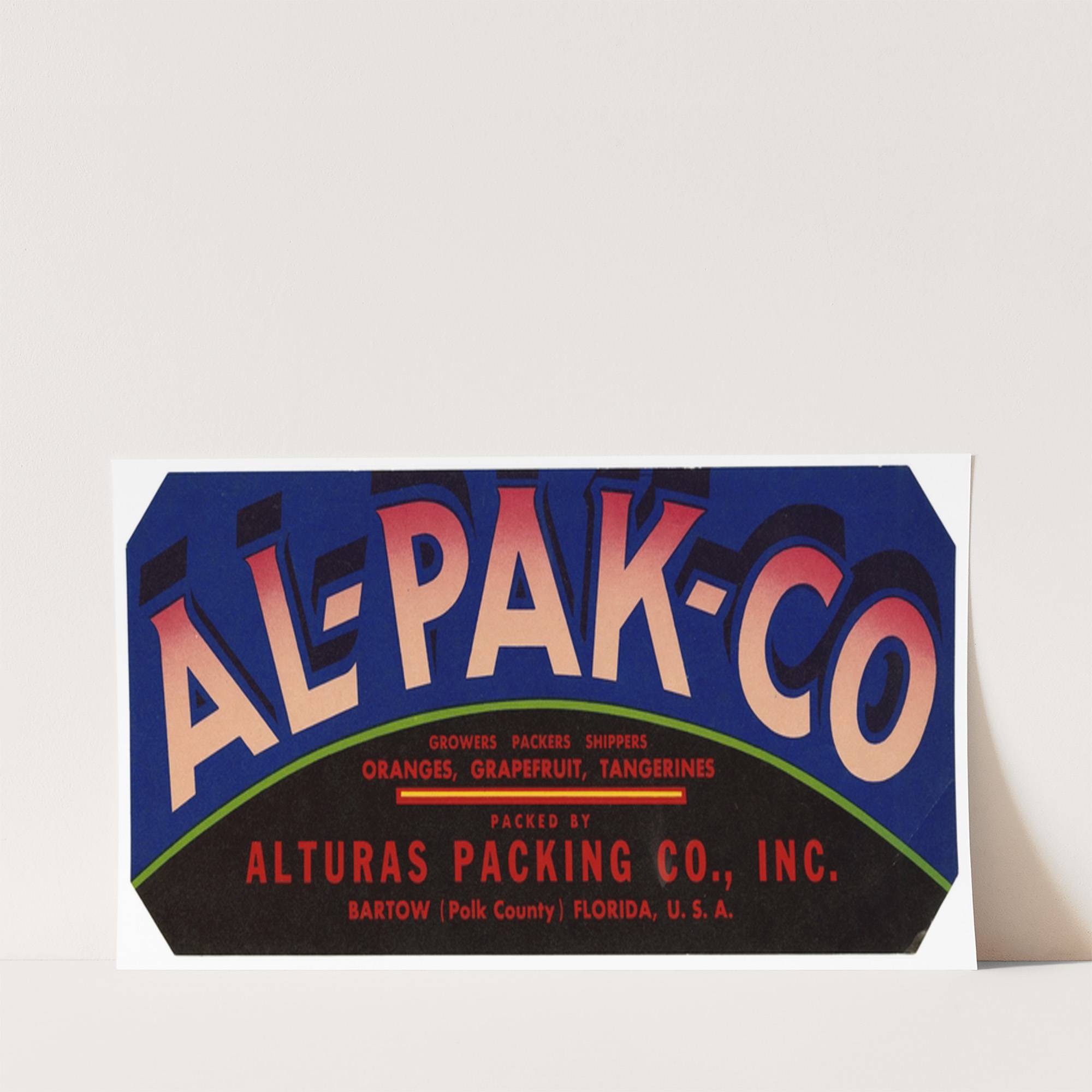 Al-Pak-Co Citrus Label (1930-1950) - Wall Art Print