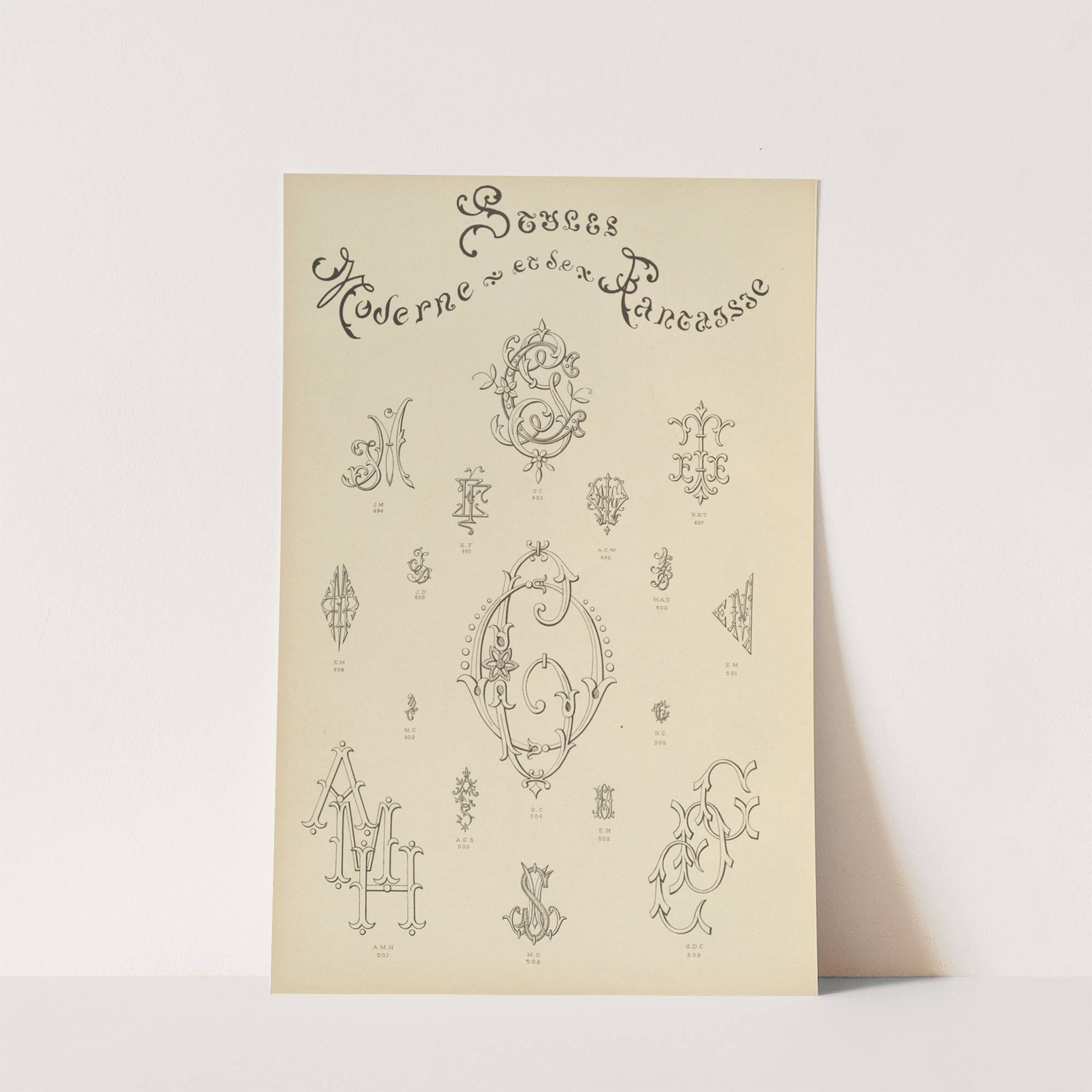 Album de chiffres & monogrammes couronnes de noblesse, françaises et etrangères Pl.048 by Ch Crouvezier - Wall Art Print