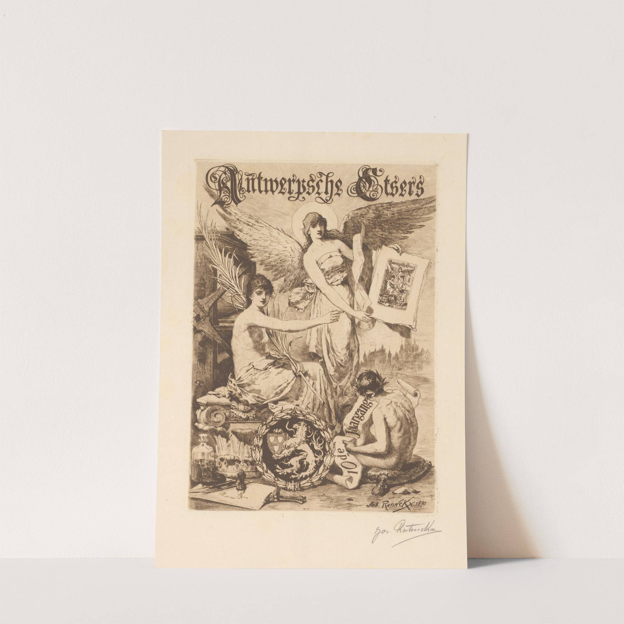 Allegorical figure with wings shows prints amid graphic attributes (1890) by Jos Ratinckx - Wall Art Print