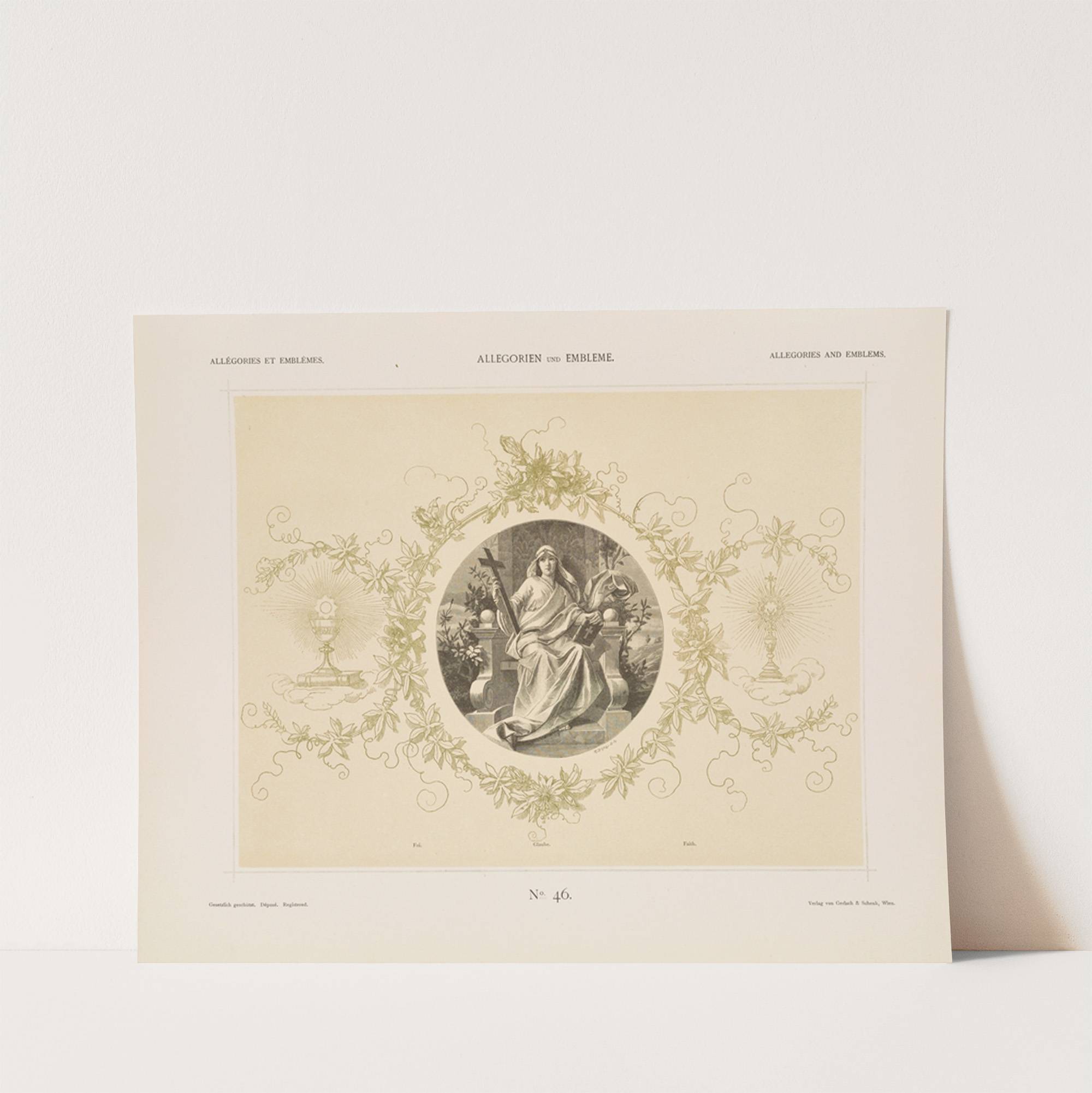 This elegant print features "Allegorie – Nereide" from the collection "Allegorien und Embleme Vol. I Pl.049" by artist Albert Ilg. The artwork showcases a beautifully rendered illustration of a serene mermaid figure seated gracefully on a rocky outcrop beside a...