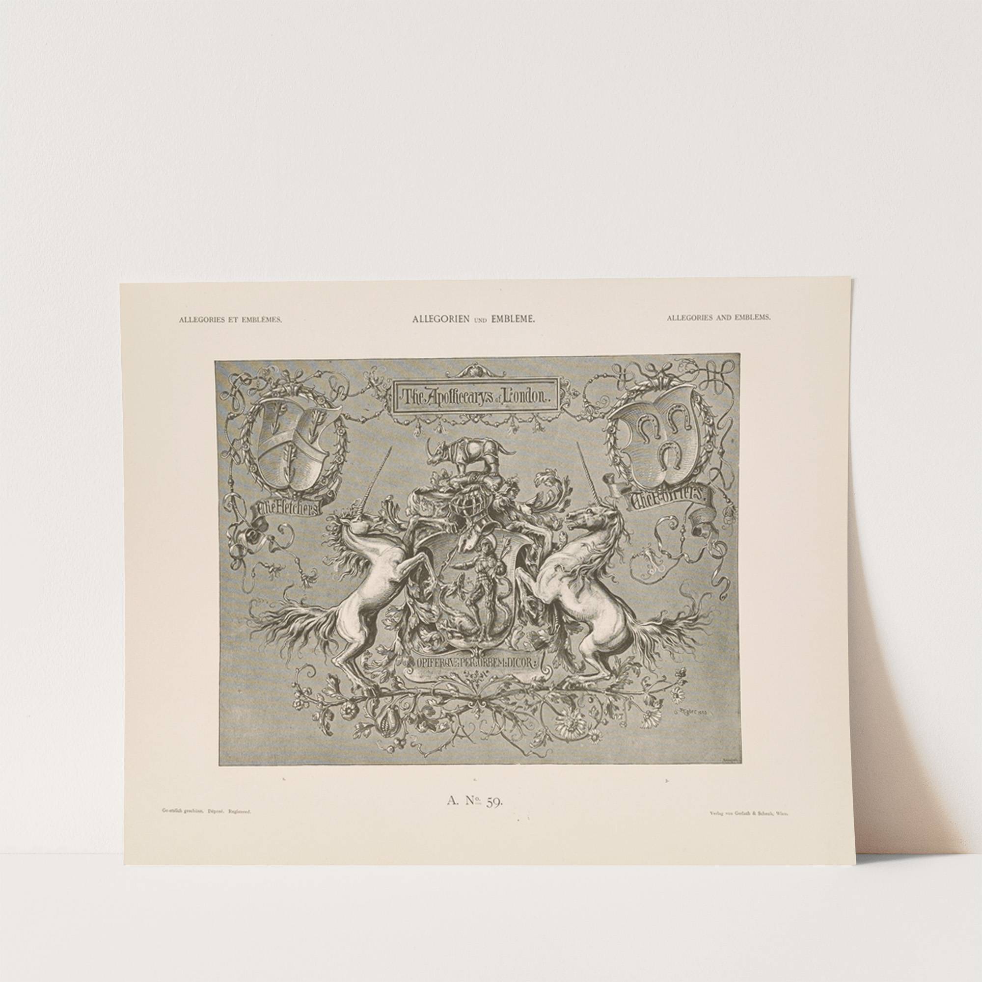 This elegant print features "Albert Ilg," showcasing his intricate work titled "Allegorie Und Embleme Vol. II Pl.067." The black-and-white illustration is a masterful example of Baroque-style engraving, rich in detail and texture. At the center, two majestic horses stand proudly,...