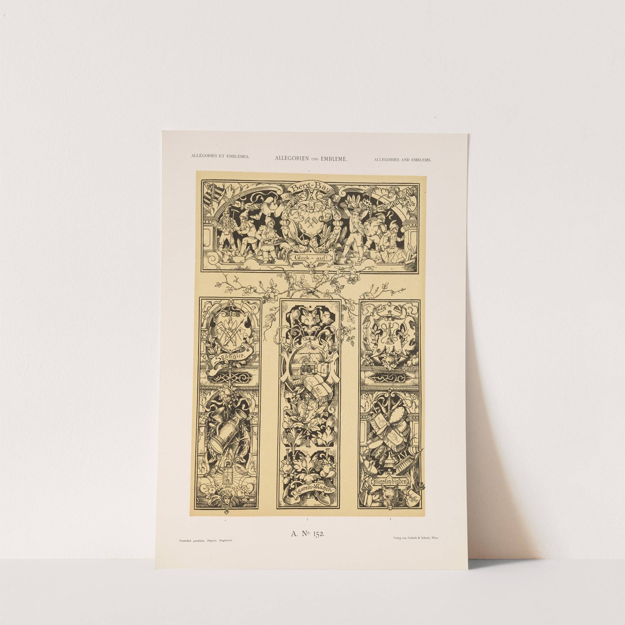 This artwork features an exquisite collection of detailed black-and-white illustrations titled "Illustrationen aus dem Leben," created by the renowned artist Albert Ilg in Volume II, Plate 163. The page is divided into six vertical panels, each meticulously adorned with intricate...