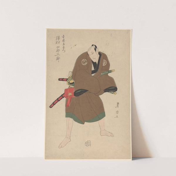 An Actor Dressed as a Samurai in Brown Robe by Toyokuni Utagawa - Wall Art Print
