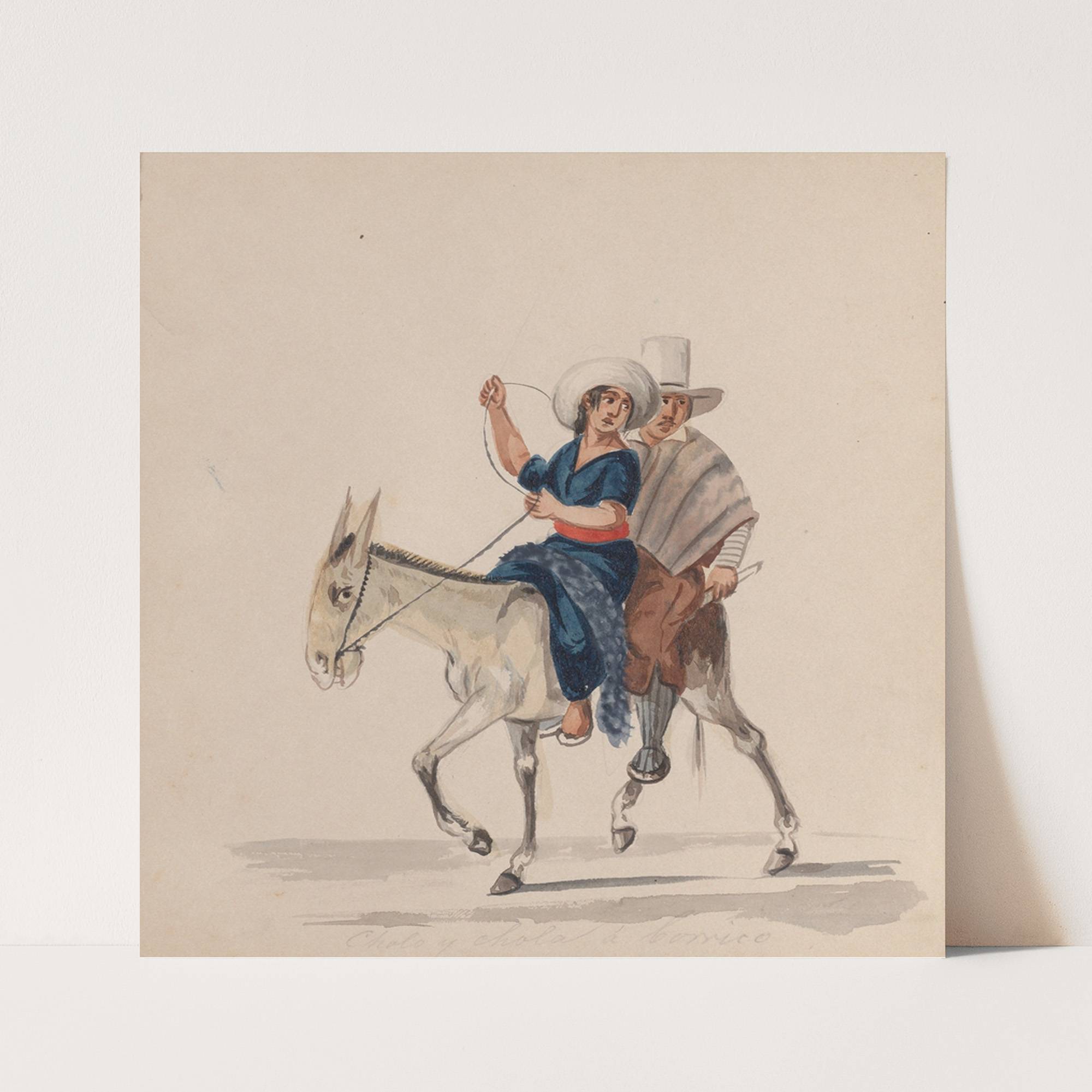 An indigenous man and woman together riding a donkey (ca. 1848) by Francisco Fierro - Wall Art Print