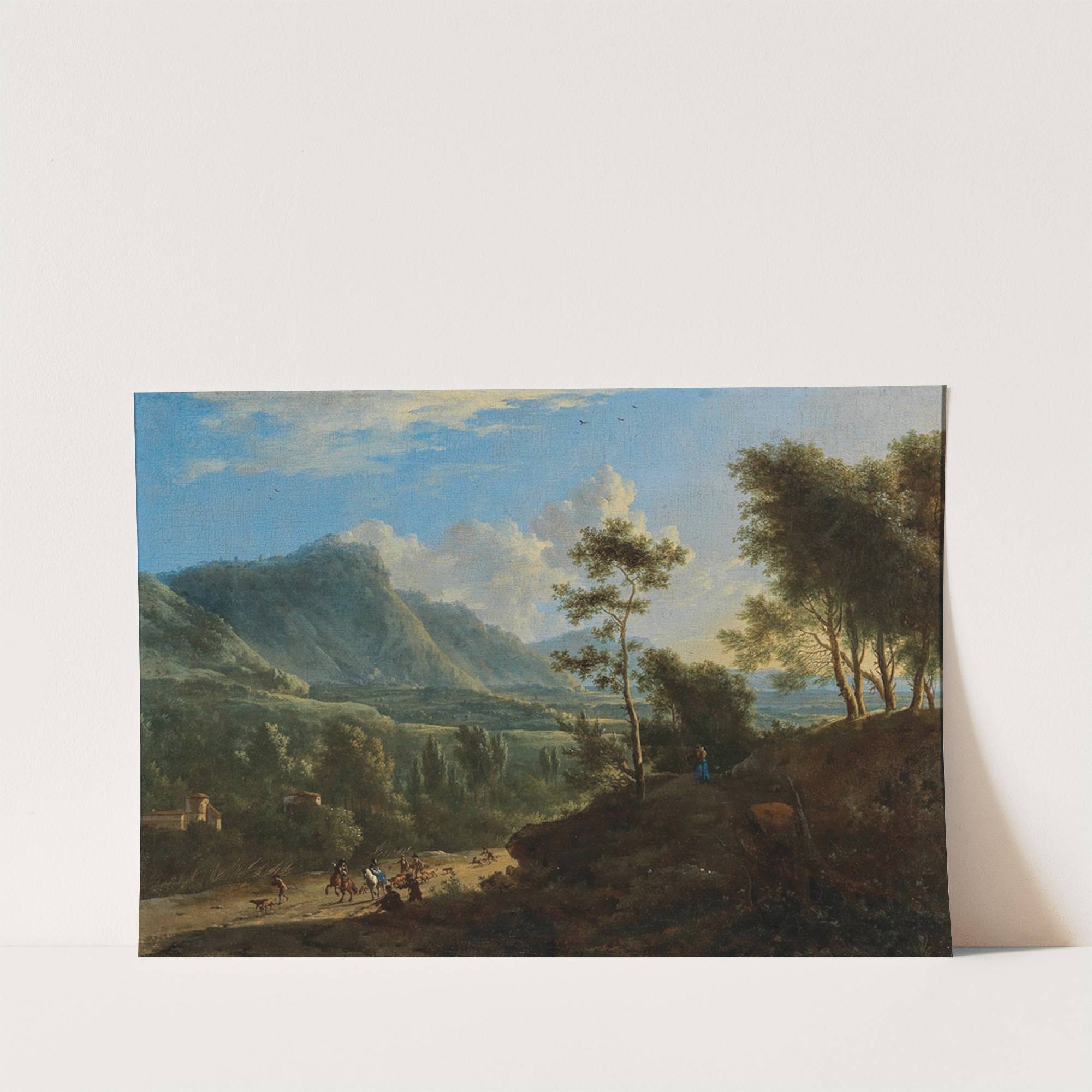 An Italianate landscape with a hunting company by Frederik de Moucheron - Wall Art Print