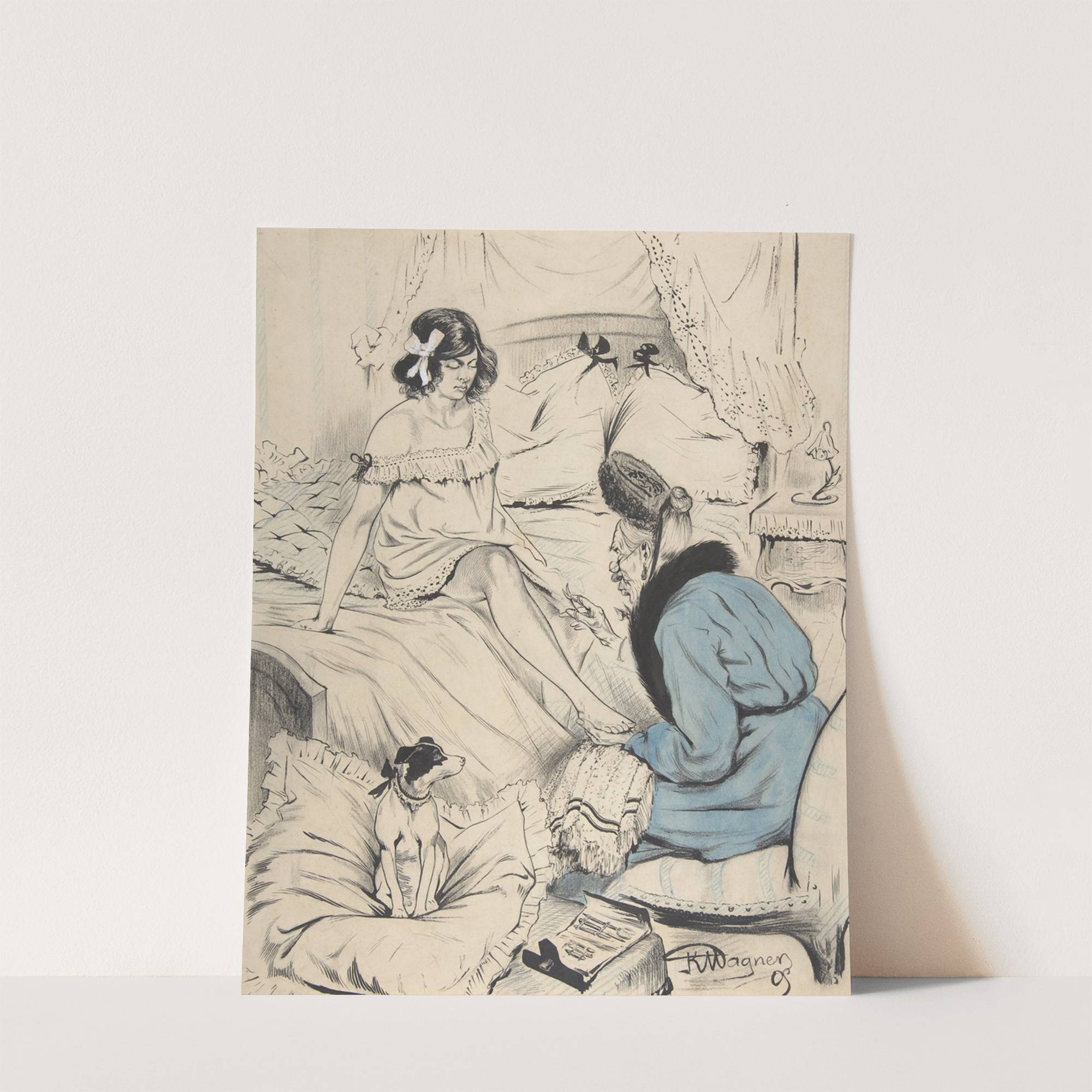 An old woman giving a pedicure to a young lady by Karl Wagner - Wall Art Print