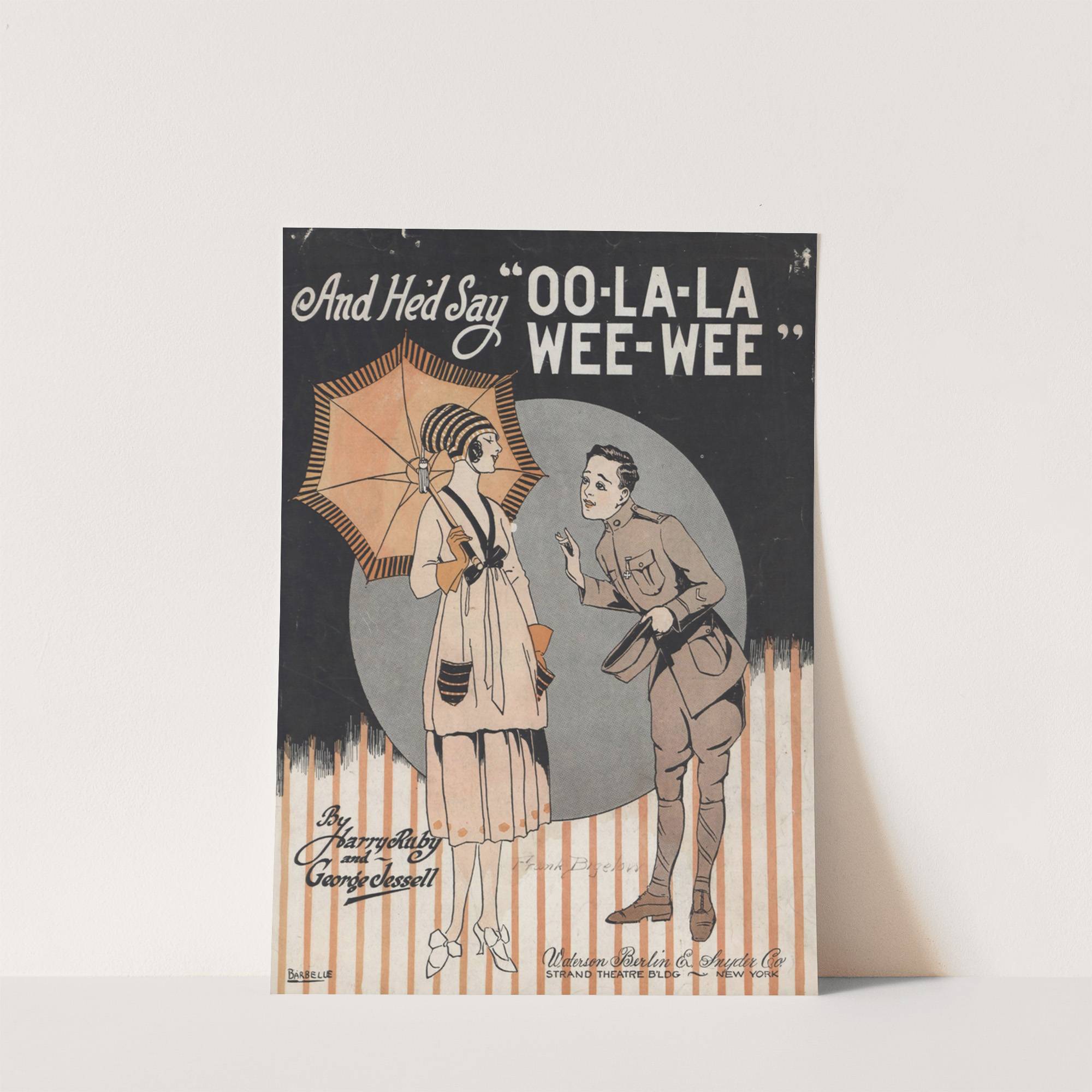 Introducing "And He'd Say O-La-La Wee-Wee," a captivating vintage art print by renowned artist Albert Wilfred Barbelle. This charming piece showcases two elegantly dressed figures in an animated, retro style. The womaTo her right, a gentleman stands confidently, dressed in...