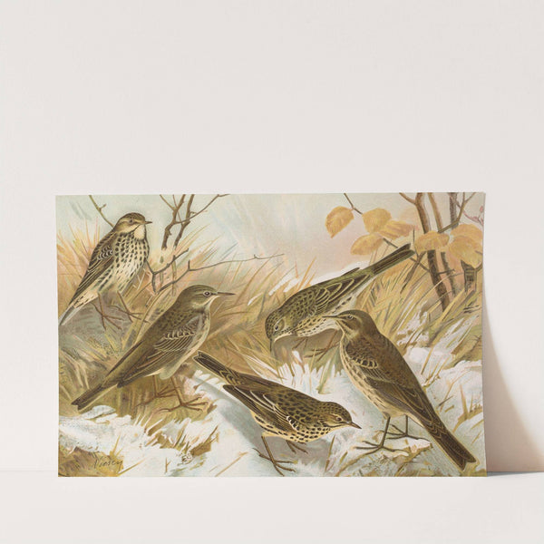 Anthus pratensis, cervinus, spipoletta, obscurus by Johann Friedrich Naumann - Wall Art Print