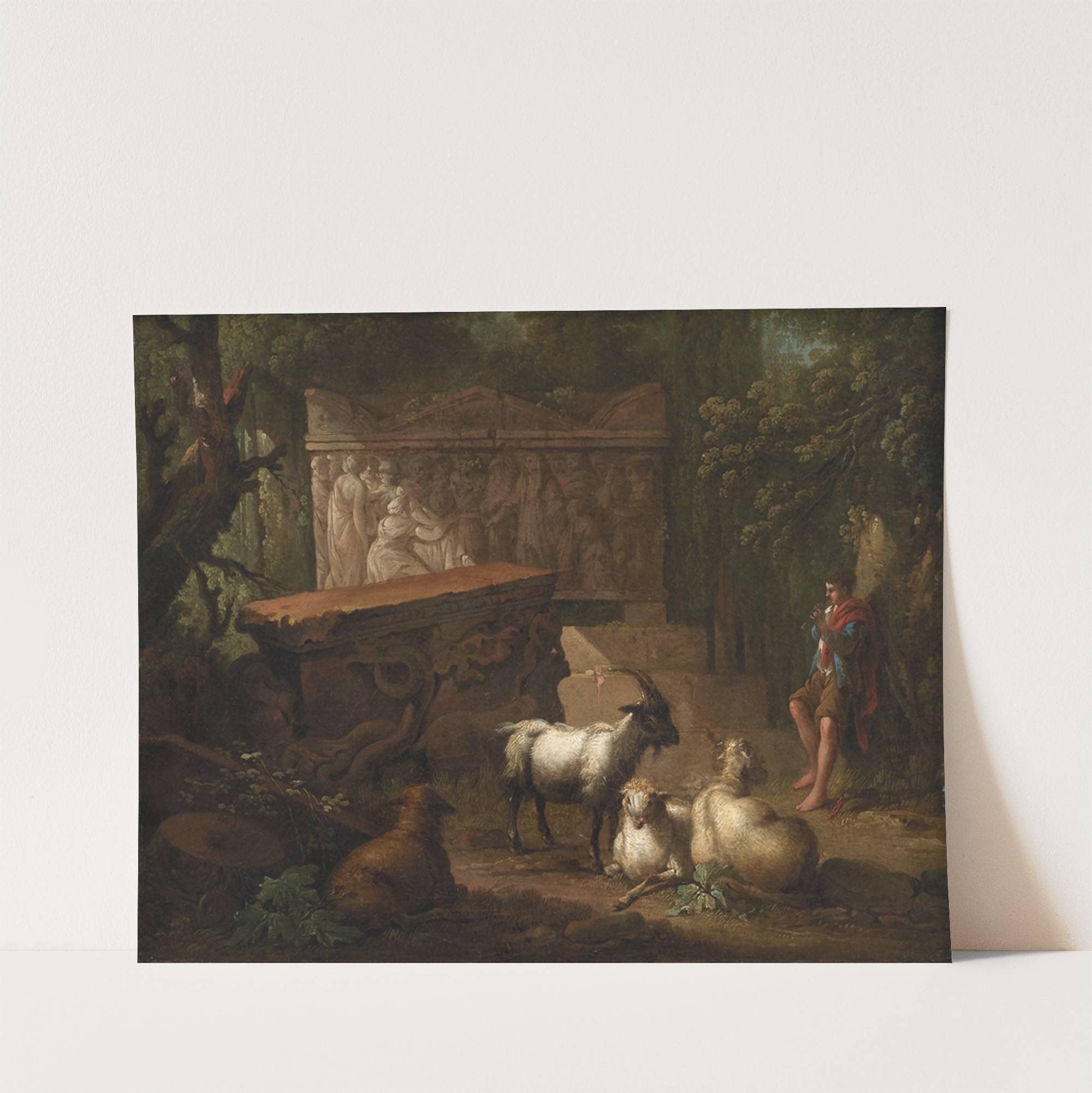 Antikke ruiner omgivet af træer, i forgrunden en hyrde og nogle geder by Johan Mandelberg  - Wall Art Print