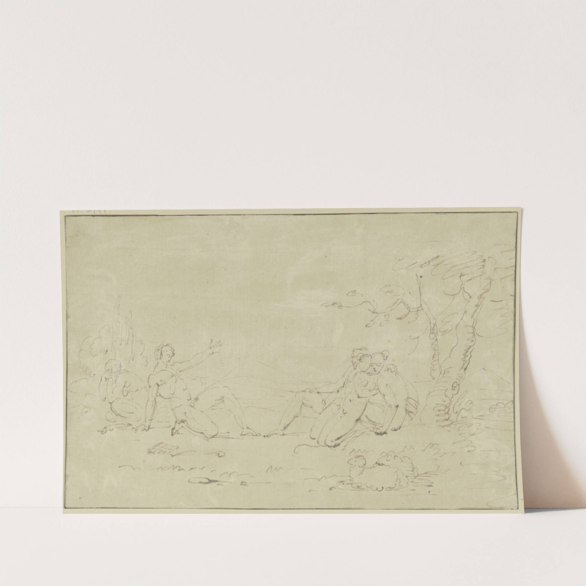 Antique scene with five naked figures by Johann Georg Schütz - Wall Art Print