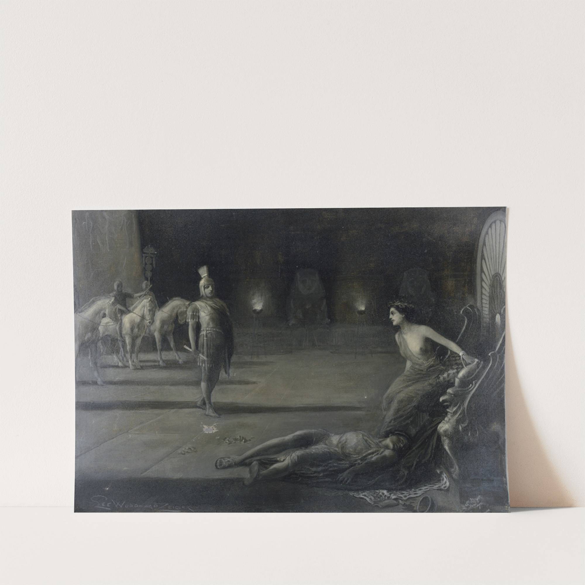 Antony approaching Cleopatra, Meïamoun lying dead at her feet (1900) by Lee Woodward Zeigler - Wall Art Print