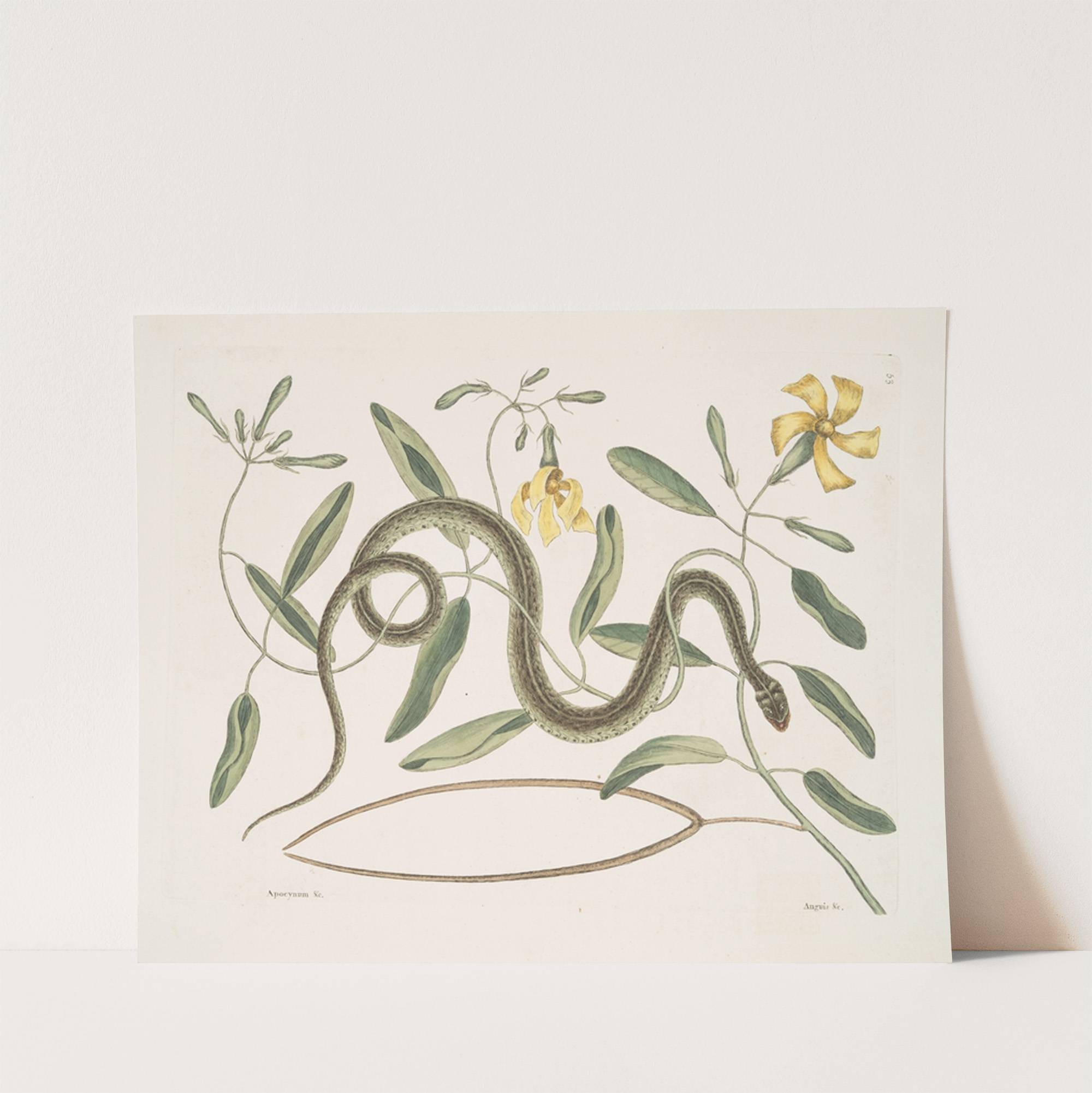 Apocynum &c.; Angis viridis maculatus, The Green-Spotted Snake. by Mark Catesby - Wall Art Print