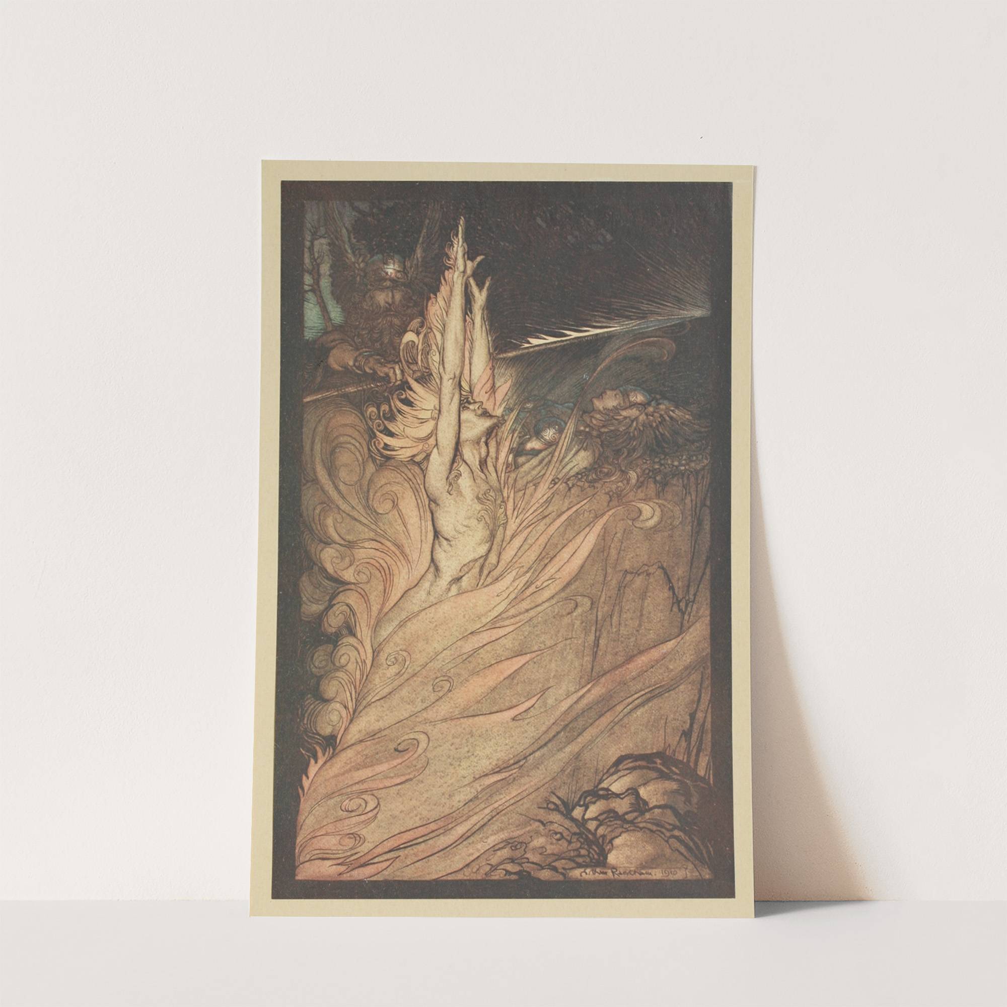 Appear, flickering fire, encircle the rock with thy flame! by Arthur Rackham - Wall Art Print