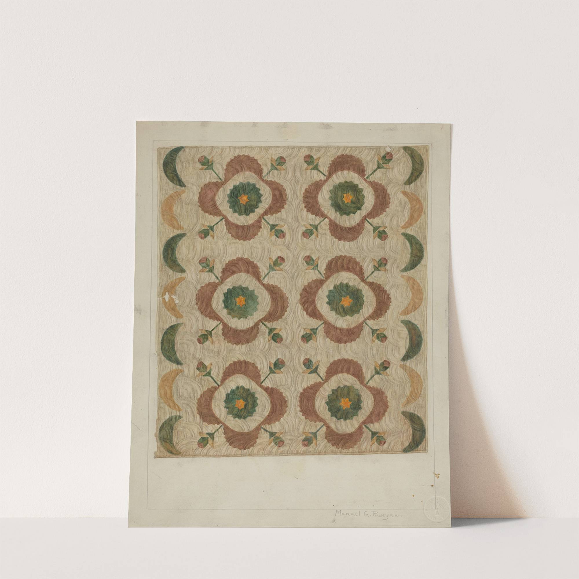Applique and Quilted Coverlet by Manuel G. Runyan - Wall Art Print