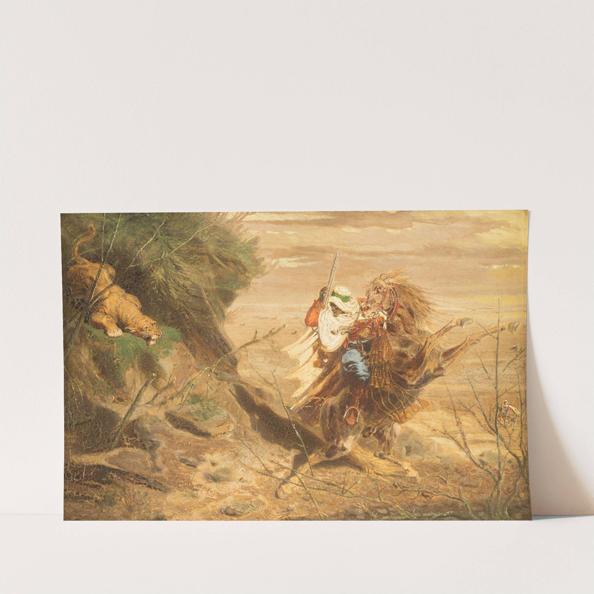 Arab fighting an attacking lion by Otto Clemens Fikentscher - Wall Art Print