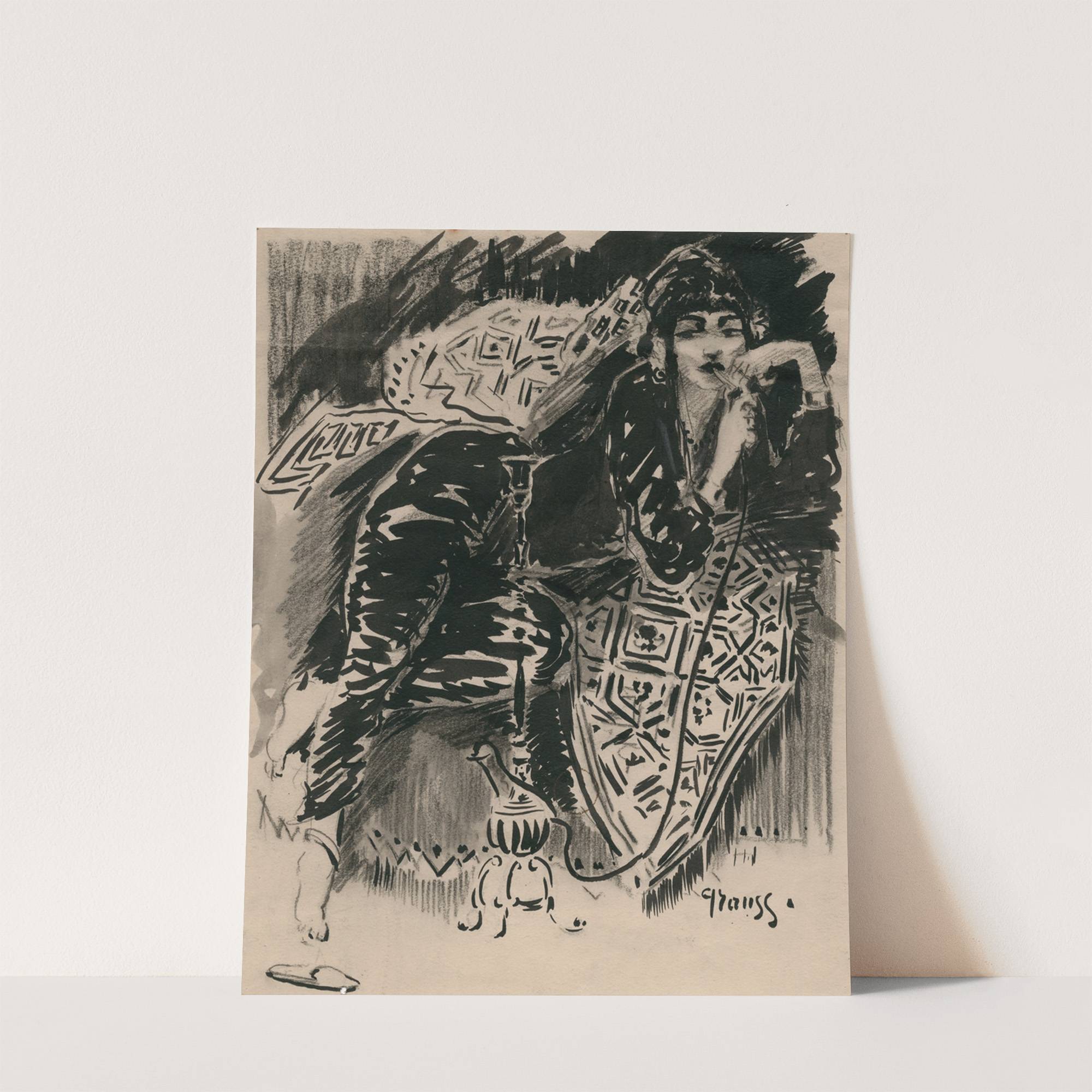 Arabische vrouw met waterpijp, liggend op een divan by Geert Grauss - Wall Art Print