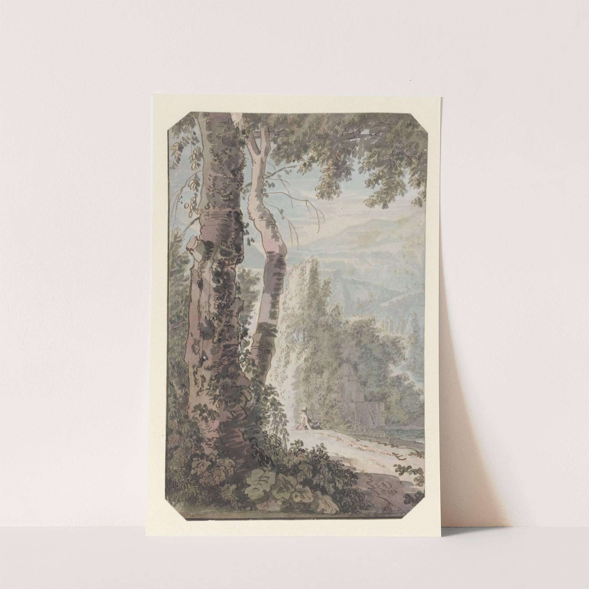 Arcadisch landschap met een rustende man bij het water by Jacob van Liender - Wall Art Print