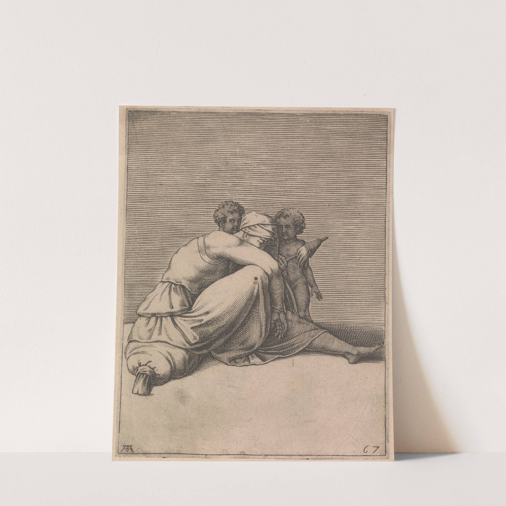 This captivating artwork, "Ancestor of Christ" by the renowned artist Adamo Scultori, is a meticulously detailed engravings that exudes timeless beauty and emotional depth. The piece features a seated adult figure, cloaked in flowing garments that suggest a sense of...